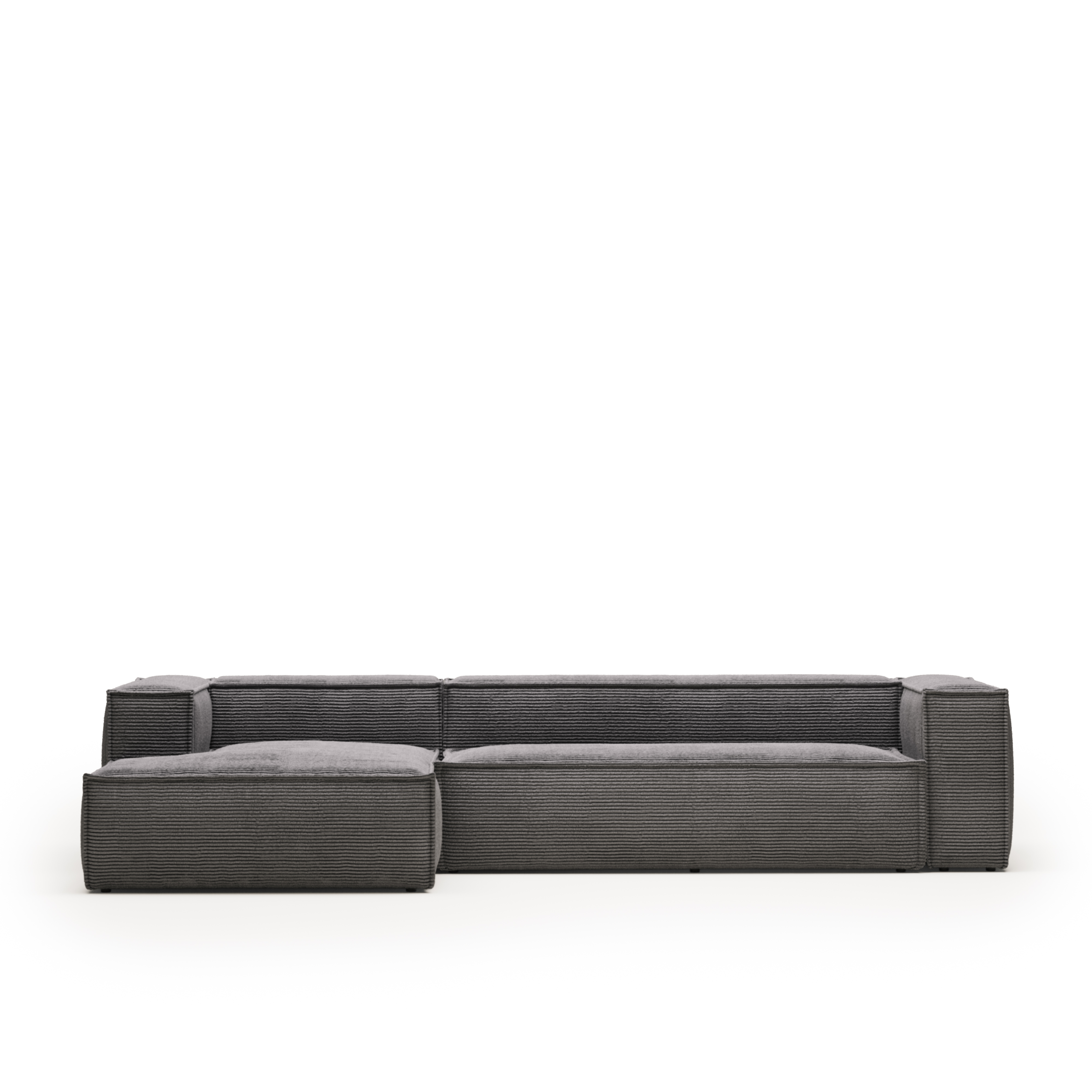 Диван 3х местный Blok с левым шезлонгом серый вельвет