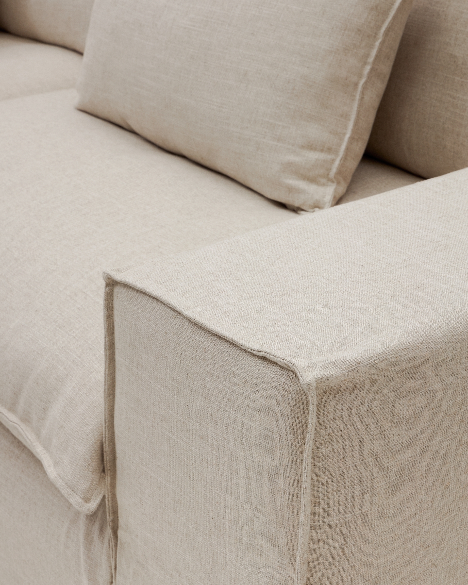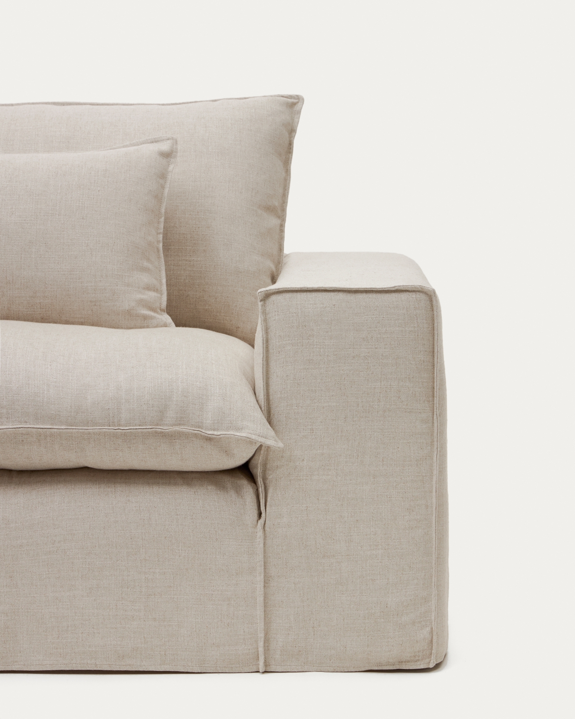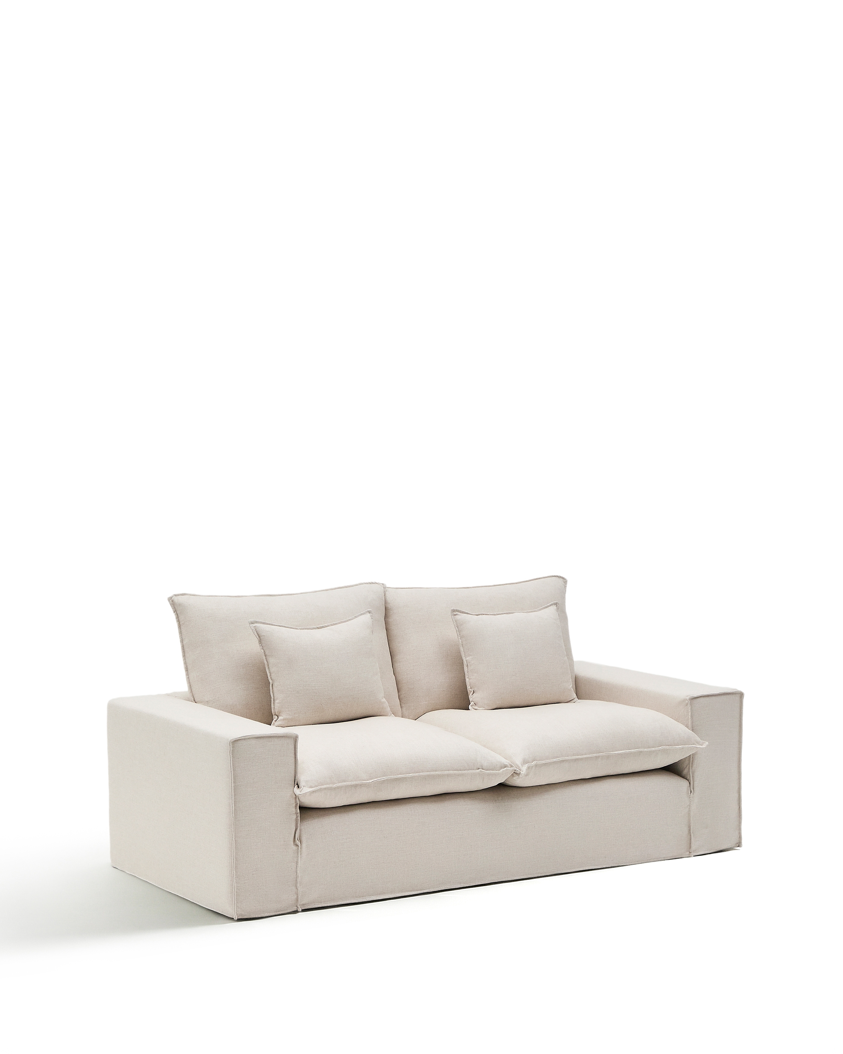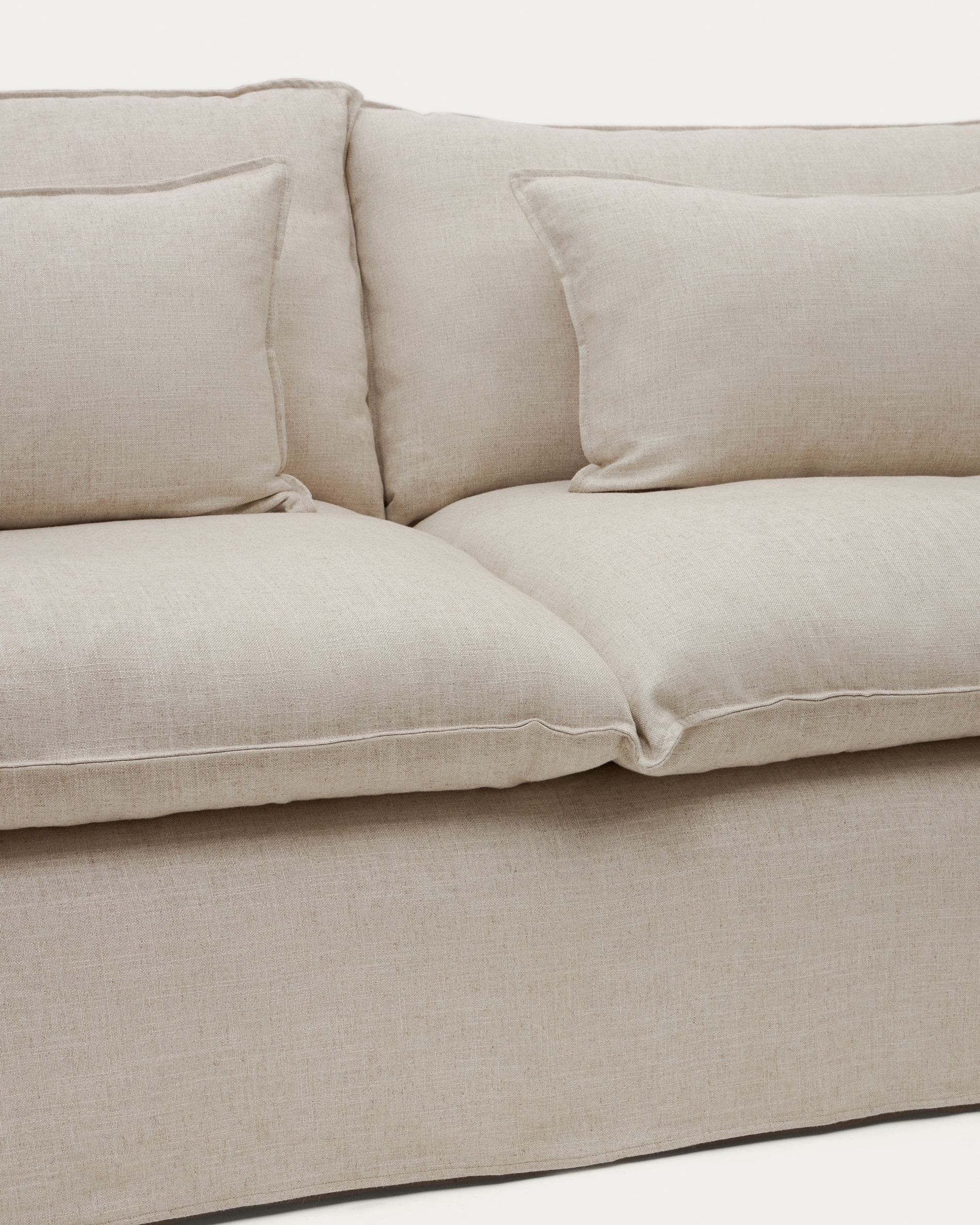 Двухместный диван Anarela из бежевого льна и вискозы со съемным чехлом, 220 см