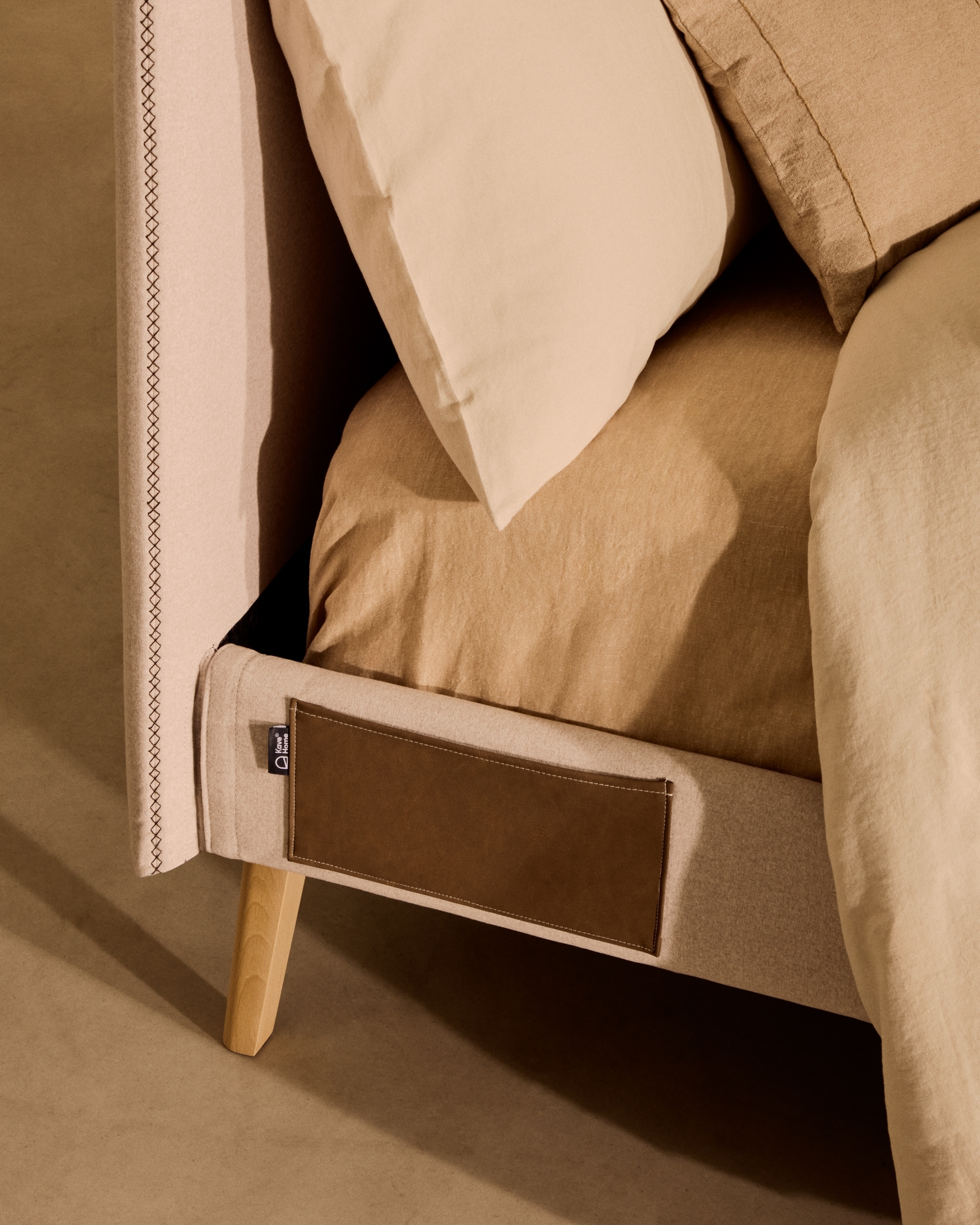 Кровать, обитая тканью Varese с защитой от пятен Тефлон. Полностью съемный чехол. Основа из дерева, обитого пенополиуретаном. Для матраса 160x200 см. Матрас и основание не включены.