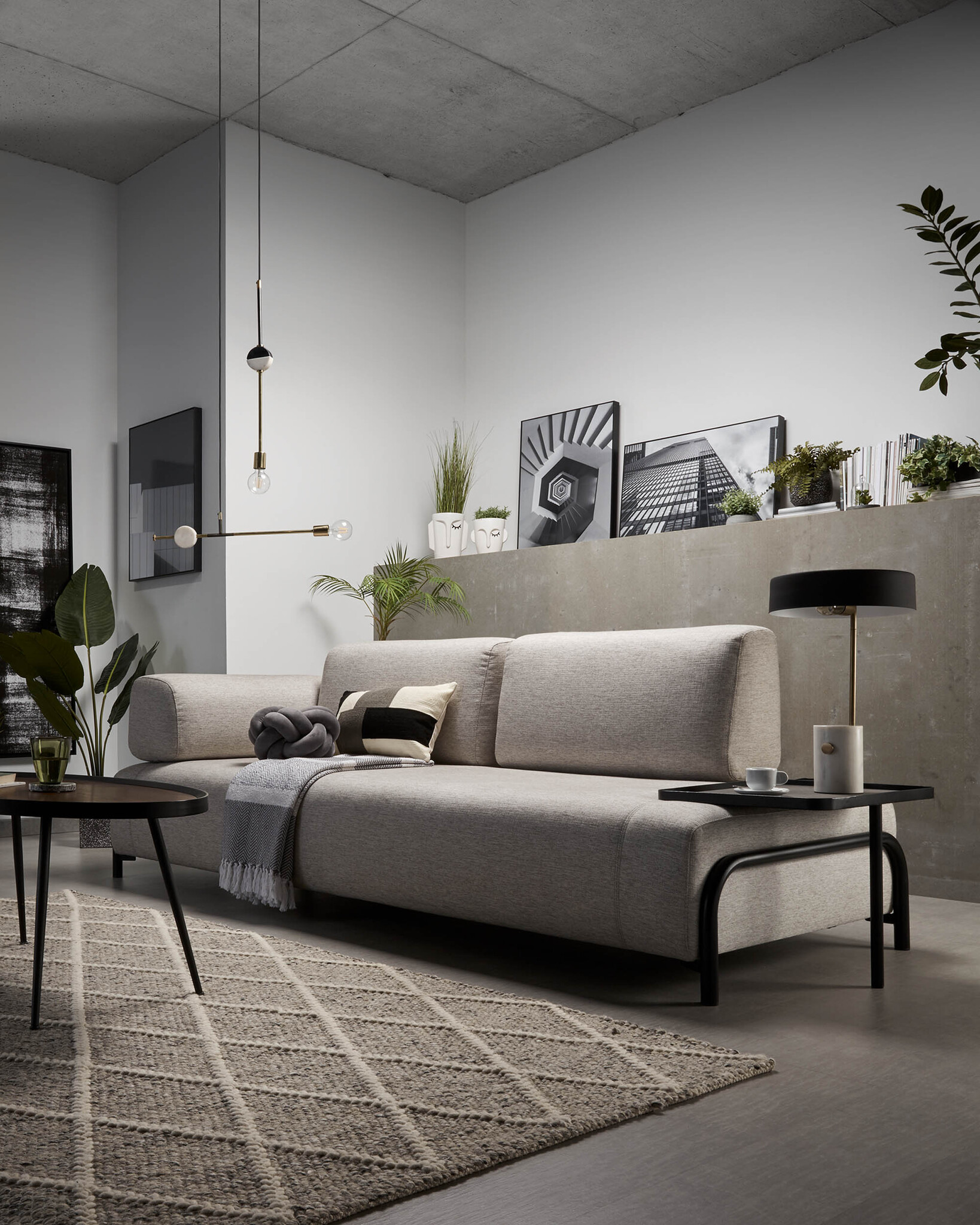 Диван Compo от фабрики La Forma – возможность создать свою комбинацию из основы и подходящего аксессуара. Диван Compo очаровывает и вдохновляет своей концепцией, которая дает возможность творить и выбирать. Здесь легко можно заменить один или сразу два подлокотника на подносы, которые даны в двух вариациях размеров. Три базовых цвета обивки позволят экспериментировать с дизайном и при этом не бояться за совместимость с интерьером. А традиционная форма – прекрасное решение для современных городских квартир. Диван имеет каркасную конструкцию из ДСП сосны, МДФ и акриловых волокон. Наполнитель – пенопласт плотностью 20 (спинка и подлокотники) и 30 (сиденье) кг/м3. Обивочное полотно – 100% полиэстер, с фактурой «рубчик». Это прочная ткань с плотностью 310 г/м2, которая имеет высокие эксплуатационные характеристики. Материал выдерживает интенсивные нагрузки, устойчив к пятнам. В коллекции представлено три цвета обивки – голубая, светло- и темно-серая. Чехлы на подушках съемные. Опора имеет трубчатую структуру с диаметром 3,5 см. Она выполнена из металла, покрыта черной порошковой краской. На ножках есть наконечники, которые защищают напольное покрытие от деформаций. При желании, подлокотники можно заменить на металлические подносы черного цвета, где большой на ножках приставляется справа, а малый накладывается слева. Для этого металлические держатели подлокотников вынимаются из прорезей в сиденье. Общая вместимость дивана составляет 3 человека. Максимально допустимая нагрузка не должна превышать 300 кг. Размеры: длина – 232 см, глубина – 98 см (глубина сиденья – 60 см), высота – 82 см, ширина подлокотников – 31 см. Габариты подносов: ширина – 21 или 40 см, глубина – 54 см. Вес – 62 кг. Подносы приобретаются отдельно. При желании можно приобрести только основу, без подлокотников и подносов. Потребуется сборка. Инструкция и крепеж включены в комплектацию.
