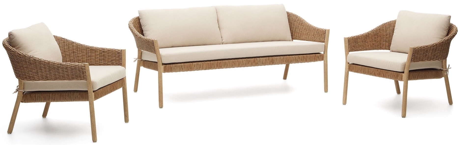 Pola Комплект из 2-местного дивана и 2 кресел из массива эвкалипта и искусственного ротанга La Forma Испания - купить по цене 430 990 руб в интернет-магазине StoreForHome.ru