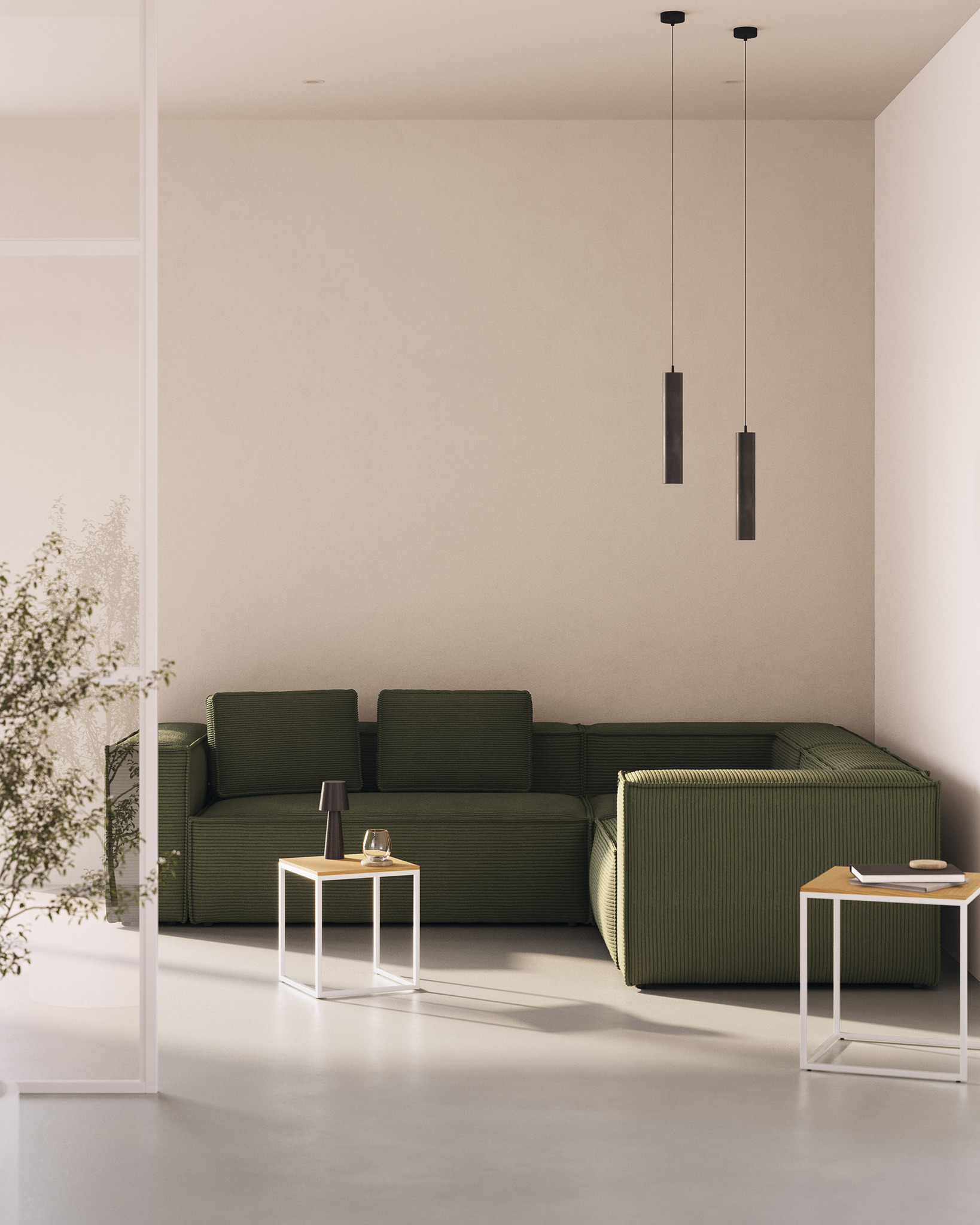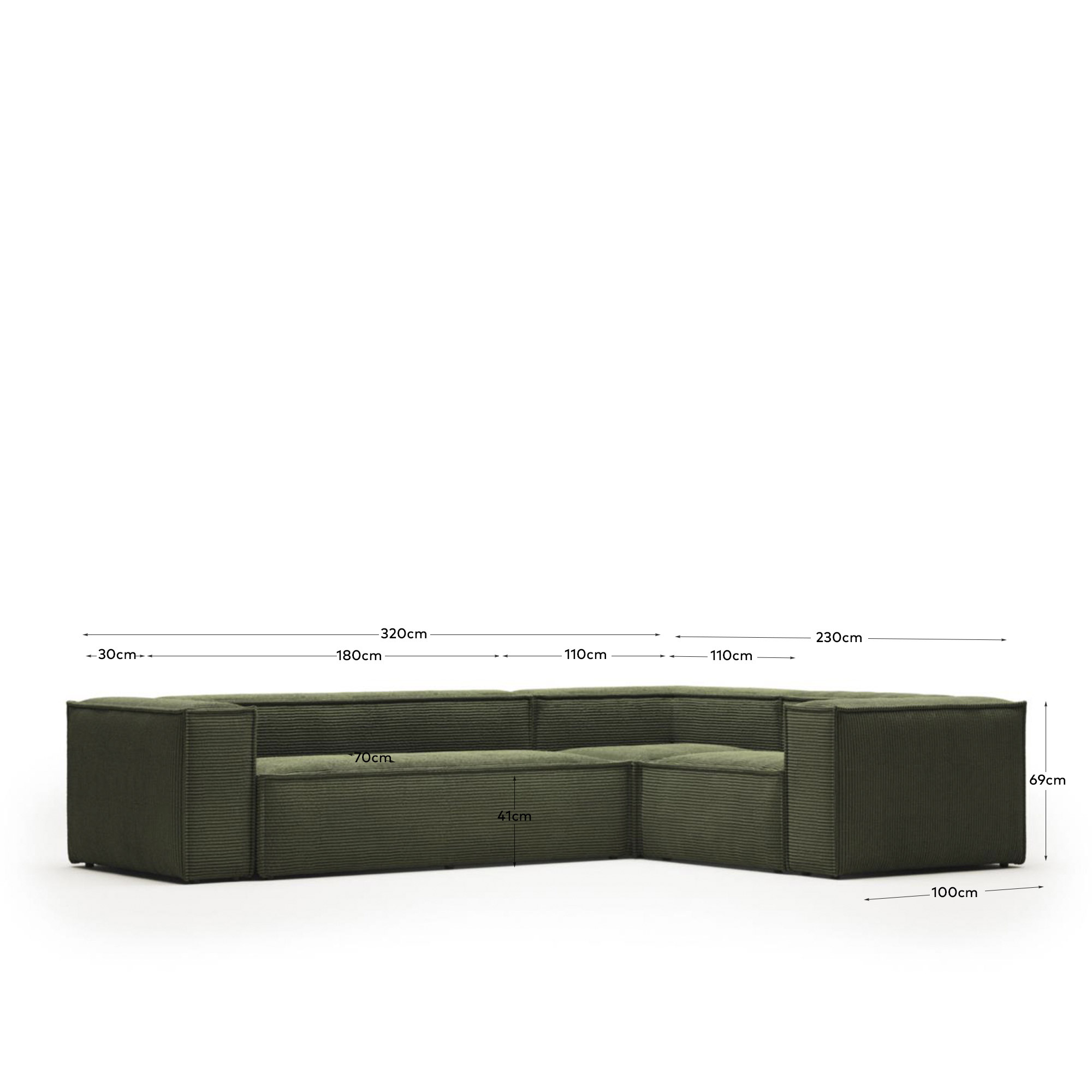 Угловой 4-местный диван Blok из плотного вельвета зеленого цвета 320 х 230 см