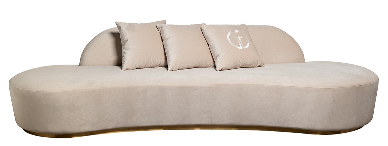 Необычный диван Lea с плавными мягкими линиями. Низкая спинка с вертикальной прострочкой на тыльной стороне. Удобное сиденье. Диван рассчитан на обзор с разных сторон — идеально для размещения в центре большого зала, лобби гостиницы, стильного салона. В комплект входят три подушки 50×50 см (одна с эмблемой GD).