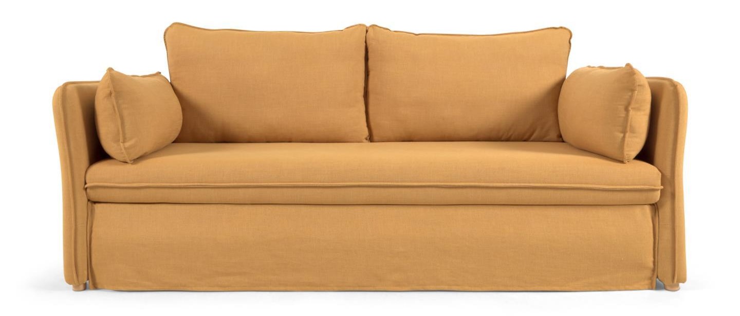 Раскладной диван-кровать Tanit от известного испанского бренда La Forma (ex Julia Grup). Механизм легкого открывания. Обивка из натурального льна. Цвет — горчичный. Каркас из МДФ, бука, массива дерева. Срок изготовления — 60-70 дней.