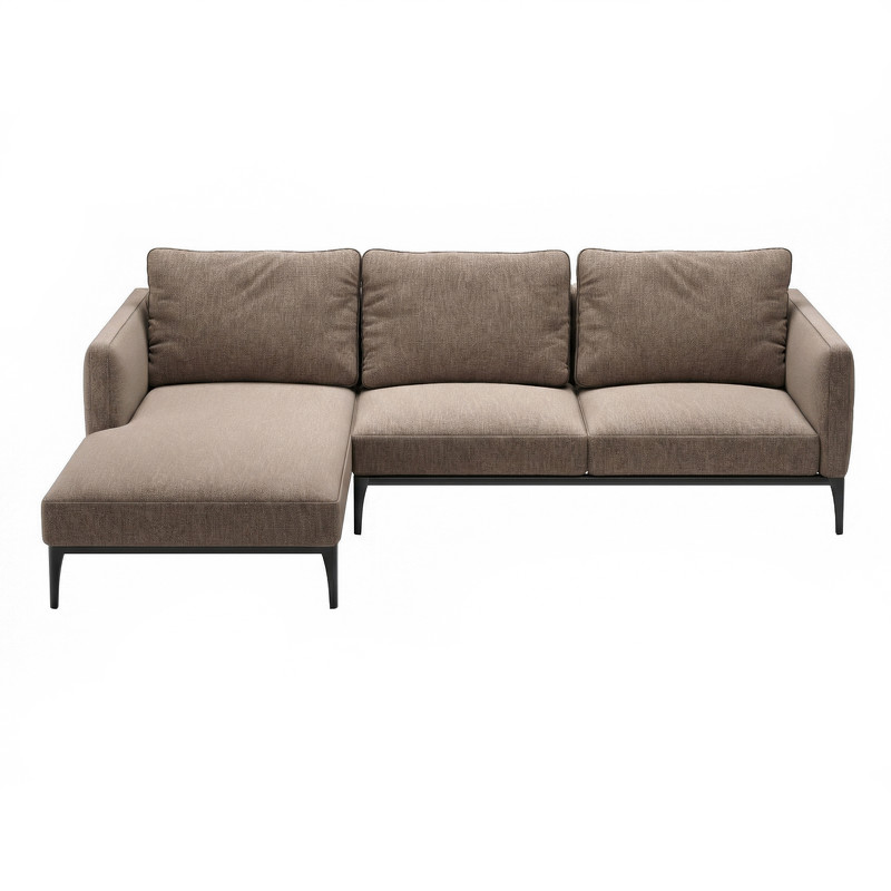 Модульный диван для интерьеров в современном стиле. Каркас из твёрдой европейской сосны. Наполнитель — ППУ и натуральное перо. Ножки из высококачественного металла. Ткань Austin (рогожка), 100% полиэстер, износостойкость >115 000 циклов. Гипоаллергенно, держит форму, воздухопроницаема.