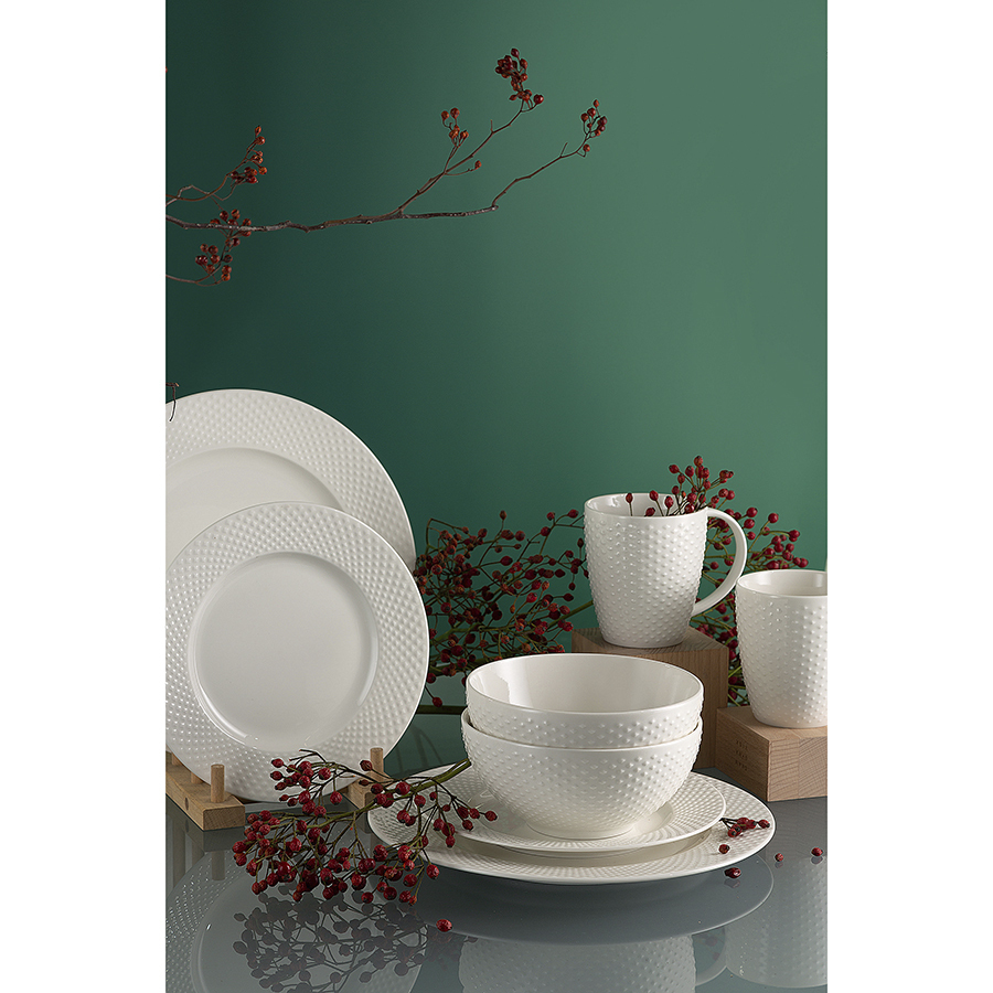 Кружка белого цвета с фактурным рисунком из коллекции Essential станет неотъемлемым атрибутом уютного чаепития. Большая удобная ручка и тактильно приятный фактурный декор украсят сервировку. Изделие из экологичного и практичного материала отличается прочностью, не выделяет вредных веществ при нагревании, легко очищается от загрязнений в теплой мыльной воде. Посуда из коллекции Essential отлично комбинируется между собой в сервировке и хорошо дополнит изделия из других линеек. Объем: 350 мл. Материал: фарфор. ! Можно использовать в микроволновой печи ! Можно мыть в посудомоечной машине ! Можно использовать в духовке при температуре не более 300° C ! Можно замораживать