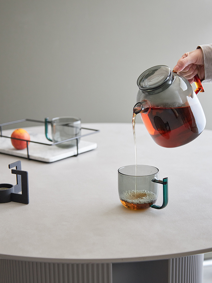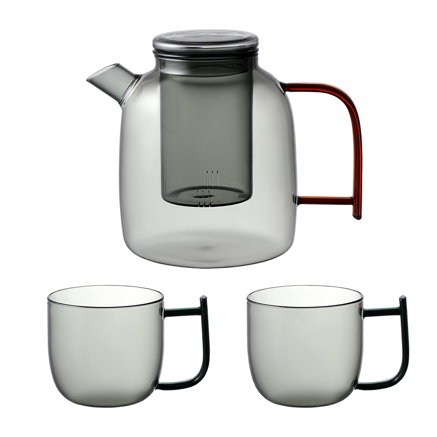 Набор чайный Misty – прекрасный выбор для ценителей стиля минимализм. Заварочный чайник и чашки из затемненного стекла привнесут в сервировку интересный акцент и будут отлично сочетаться с любой посудой. Особенности и преимущества: - Боросиликатное стекло, из которого выполнена посуда, обладает повышенной прочностью и термостойкостью. - Материал легко очищается от загрязнений и не содержит в своем составе вредных соединений. - Специальный стеклянный фильтр задерживает чайные листья и кусочки фруктов, позволяя получить чистый напиток. Материал: боросиликатное стекло. Объем чайника: 1,5 л. Объем чашек: 380 мл. Чашка (размер с ручкой: 12,7 см, диаметр верхней части:9 см, диаметр донышка: 6,6 см). Чайник( размер с носиком и ручкой: 20,8 см, диаметр верхней части: 8 см, диаметр донышка: 13 см) Можно мыть в посудомоечной машине в деликатном режиме. Запрещается использование абразивных материалов и агрессивной бытовой химии.