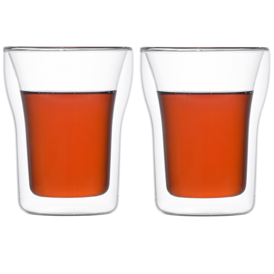 Набор из двух оригинальных стаканов станет отличным приобретением и приятным презентом к празднику. Емкости из прочного боросиликатного стекла с двойными стенками дольше сохраняют температуру холодных и горячих напитков. За счет специального воздушного пространства создается эффект “термоса”. Необычный дизайн привлекает внимание и великолепно вписывается в любую сервировку. Благодаря практичному и устойчивому к износу материалу посуда легко очищается от загрязнений, сохраняет привлекательный вид на протяжении всего срока эксплуатации. Материал: боросиликатное стекло. Объем: 250 мл. Количество предметов в наборе: 2 шт. Посуду рекомендуется очищать от загрязнений в теплой воде с помощью мягкой губки с жидким средством. Допускается мытье в посудомоечной машине. Запрещается использование абразивных материалов и агрессивной бытовой химии.