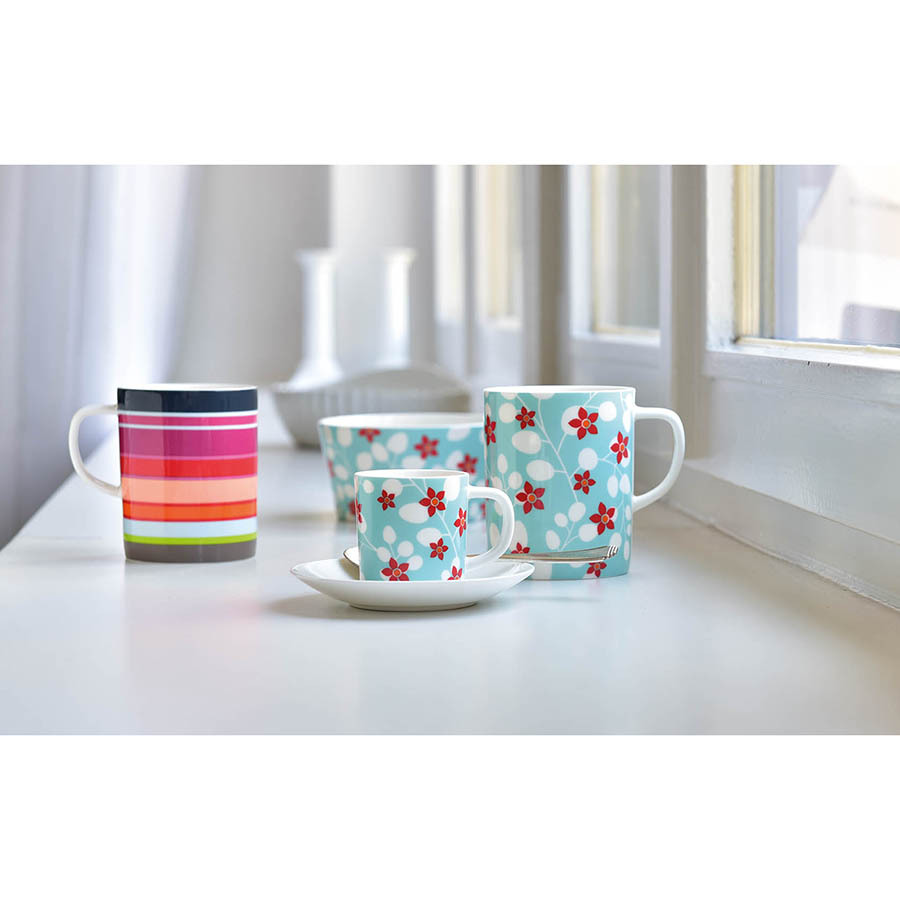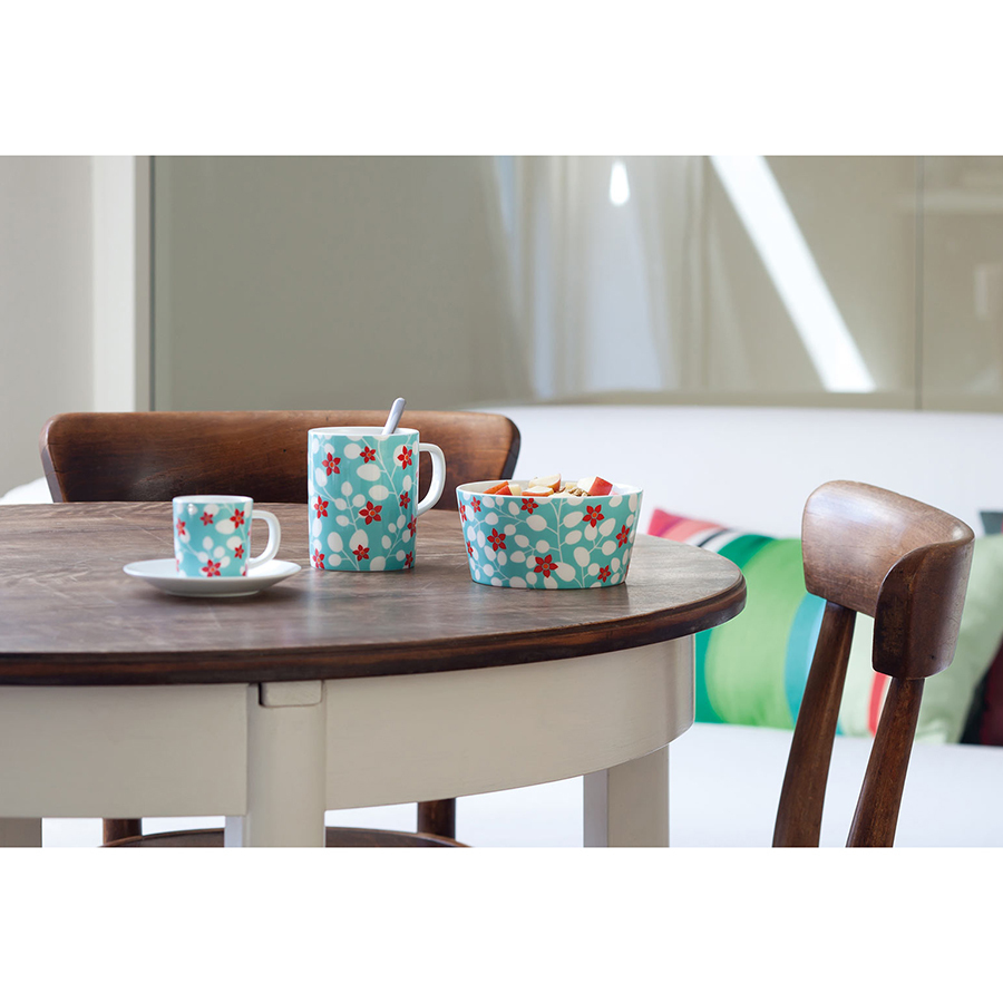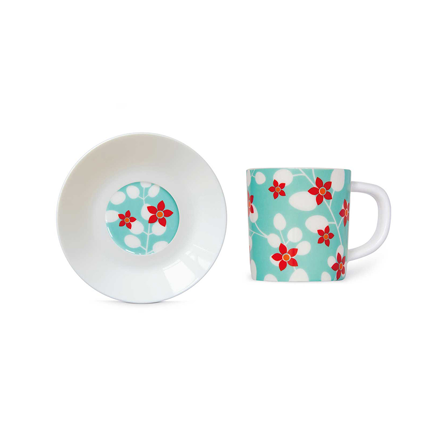Кружка из качественного фарфора с цветочным принтом прекрасно подойдет для подачи бодрящего кофе и станет ярким акцентом на вашем столе. В комплект входит практичное фарфоровое блюдце. Можно мыть в посудомоечной машине.