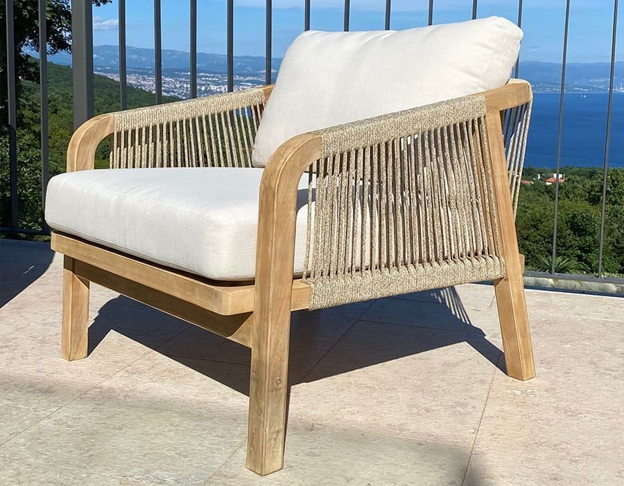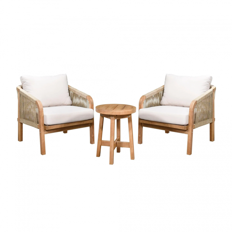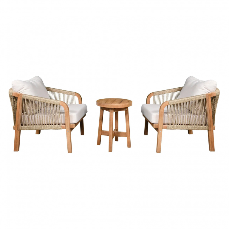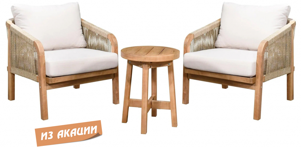 Лаунж группаRavona, рассчитанная на 2 персоны, - это садовая мебель из АКАЦИИ в современном стиле.Дизайнерские формы мебели из этой коллекции создадут стильный и узнаваемый облик зоны отдыха на Вашей веранде. Ravona - этосовременная коллекция садовой мебели из акации, выполненная в комбинации натурального веревочного плетения роуп, акации и бежевых подушек. Цвет натуральной твердой древесины представляет собой натуральный цвет с мелкой текстурой, придающий древесине приятный теплый вид. Ravona- это стиль и элегантность на Вашей веранде. Особенности: Материал -АКАЦИЯ,отделка экомаслом тик Light #01A. Веревочное плетение роуп 6 мм толщиной на спинкеиподлокотниках кресел излучает стиль в сочетании с деревянными поверхностями. Древесина, из которой изготовлена мебель, имеет сертификацию FSC (Forest Stewardship Council) - гарантия качества и происхождения древесины.Знак FSC - показатель того, что продукция происходит из леса, в котором ведется экологически и социально ответственное лесное хозяйство.Благодаря своей долговечности, прочности и устойчивости к вредителям эта древесина была создана для изготовления садовой мебели.Страна происхождения древесины: Вьетнам, Малайзия. Средняя плотность древесины: 550 кг/м3. Анодированная фурнитура из нержавеющей стали. Подушки в комплекте, ткань подушек - олефин, наполнитель - толстый поролон. Материалы устойчивы к УФ-излучению и другим погодным воздействиям. Цвет подушек - бежевый. Состав комплекта: КреслоRavona KD (Арт. TAG/HUC25687KD/SINGLE),размер680х795х685 мм- 2шт. Кофейный столRavona(Арт. TAG/HUC28187),размер 1275х650х360мм-1 шт. Данные упаковки: 2 кресла:Вес нетто: 30кг. Вес брутто: 35 кг. Размер упаковки: 830х790х655 мм. Кофейный стол:Размер упаковки: 535х440х125 мм. Открыть инструкцию по уходу.