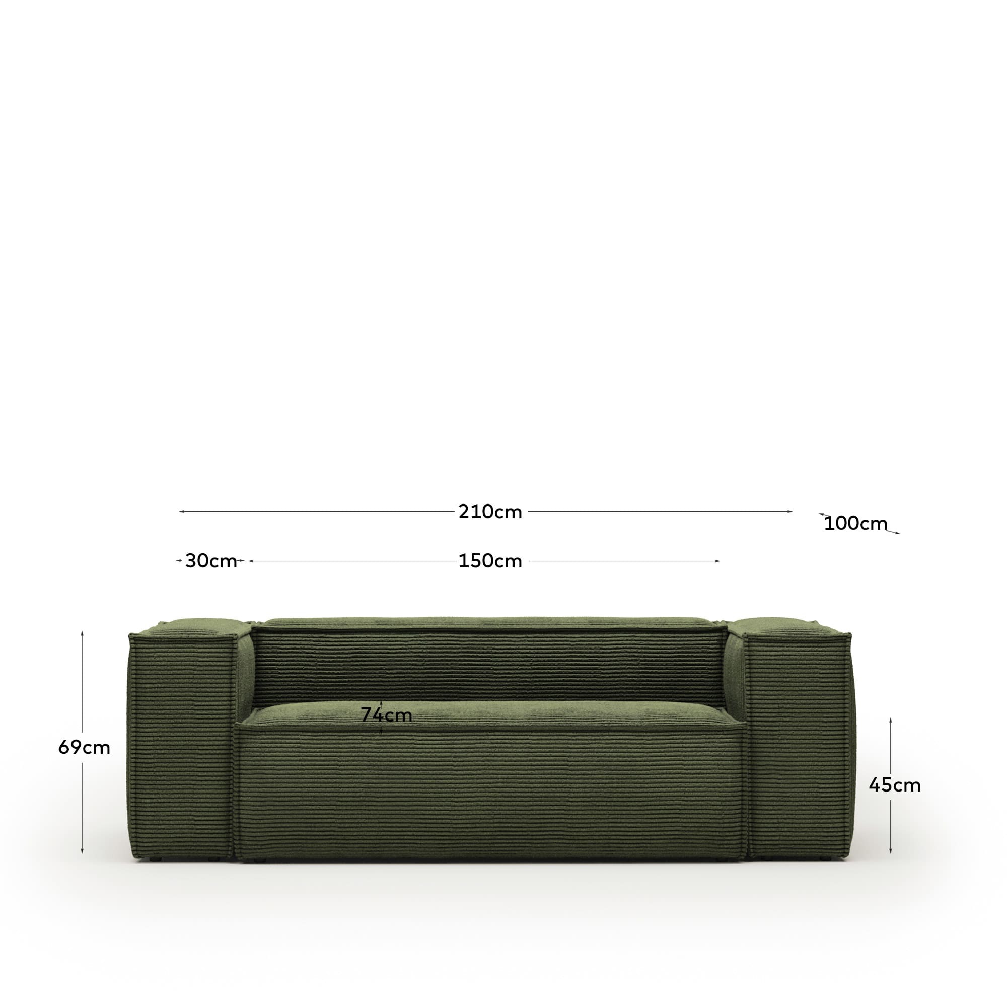Диван 2-местный Blok в плотном зеленом вельвете 210 см