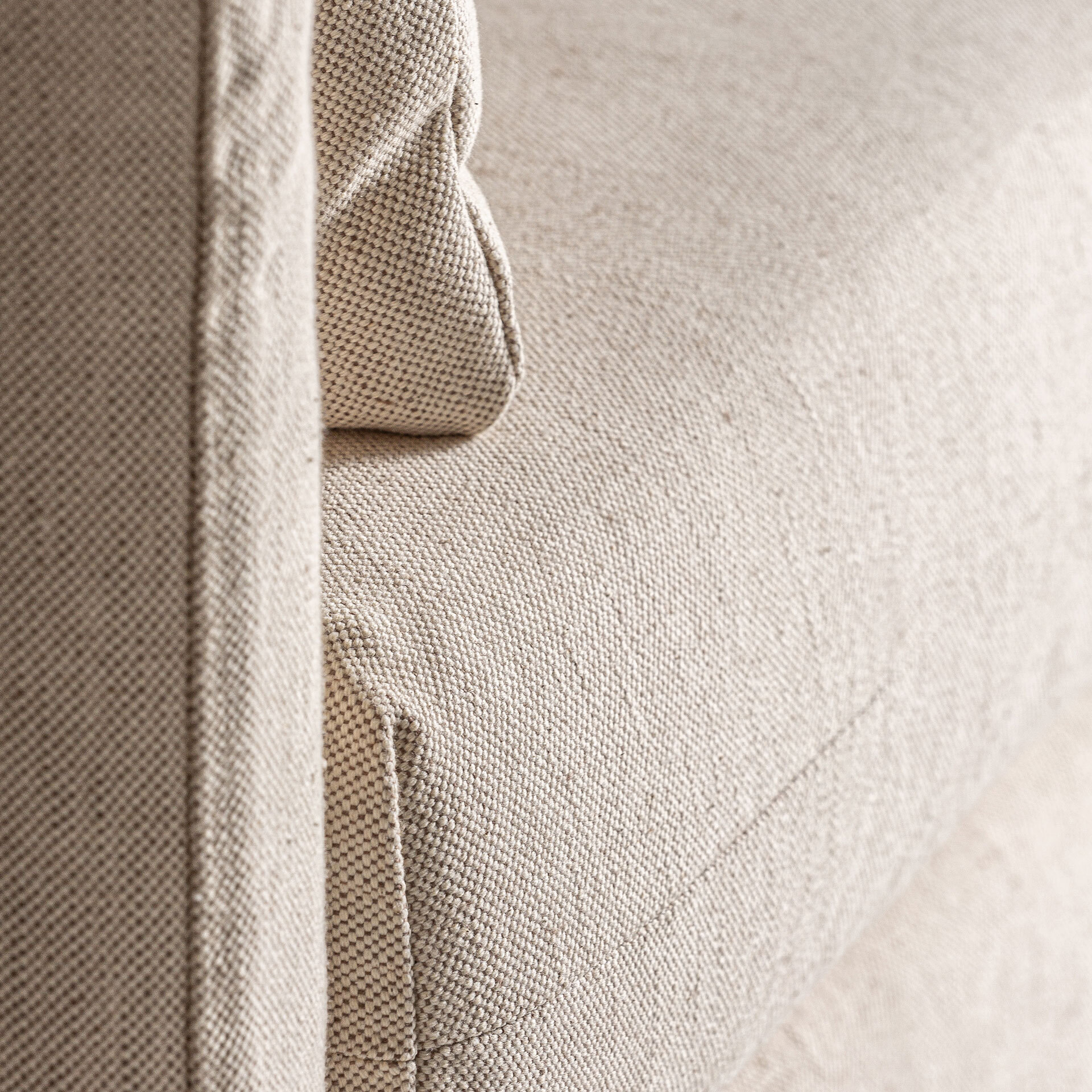 Диван Arbois в колониальном стиле, изготовлен из ясеня кремового цвета в сочетании с полиэстером. Чехлы съемные.