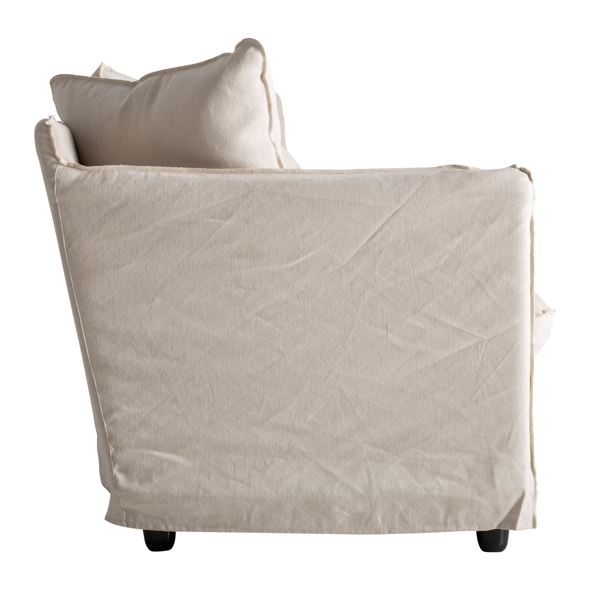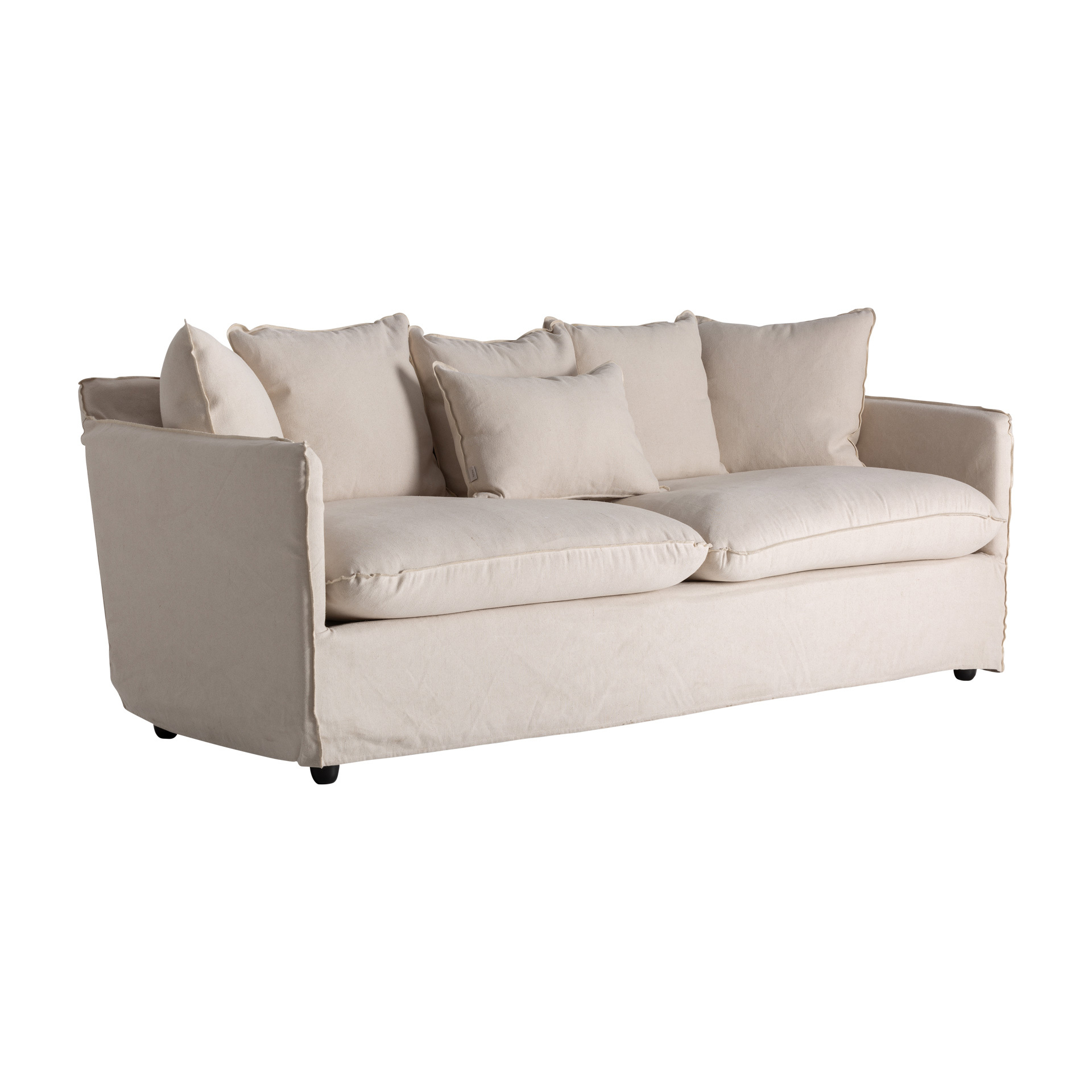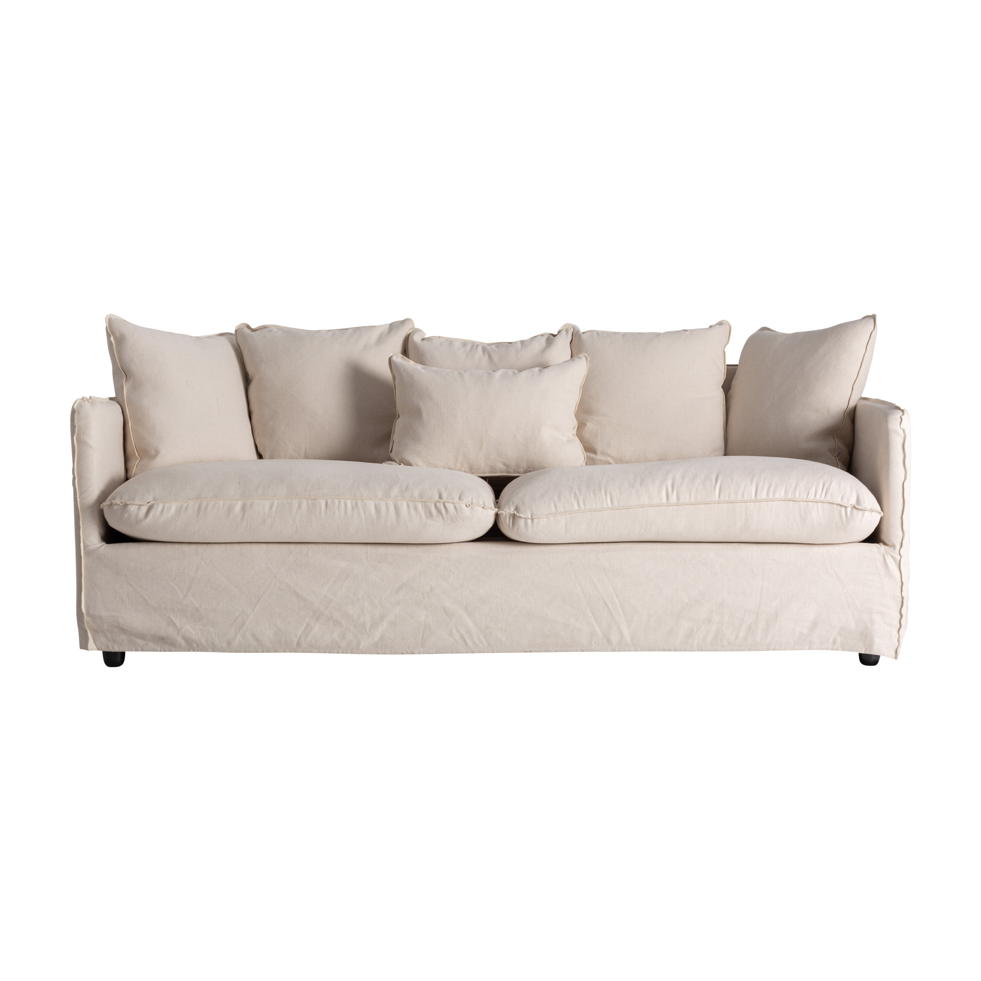 Диван из бежевого полиэстера в сочетании с деревом. Ширина: 216 см, Глубина: 94 см, Высота: 93 см