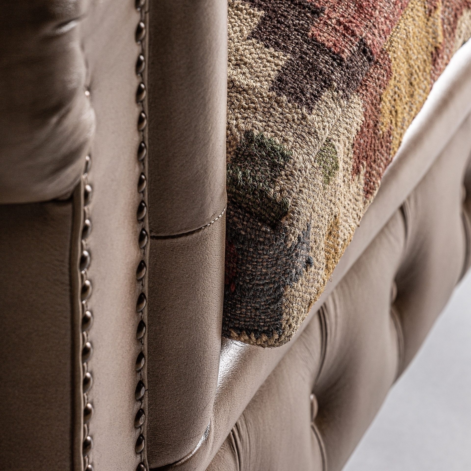 Диван Hebburn, верблюжьего цвета, в винтажном стиле. Изготовлен из кожи в сочетании с древесиной сосны. Съемное изделие.