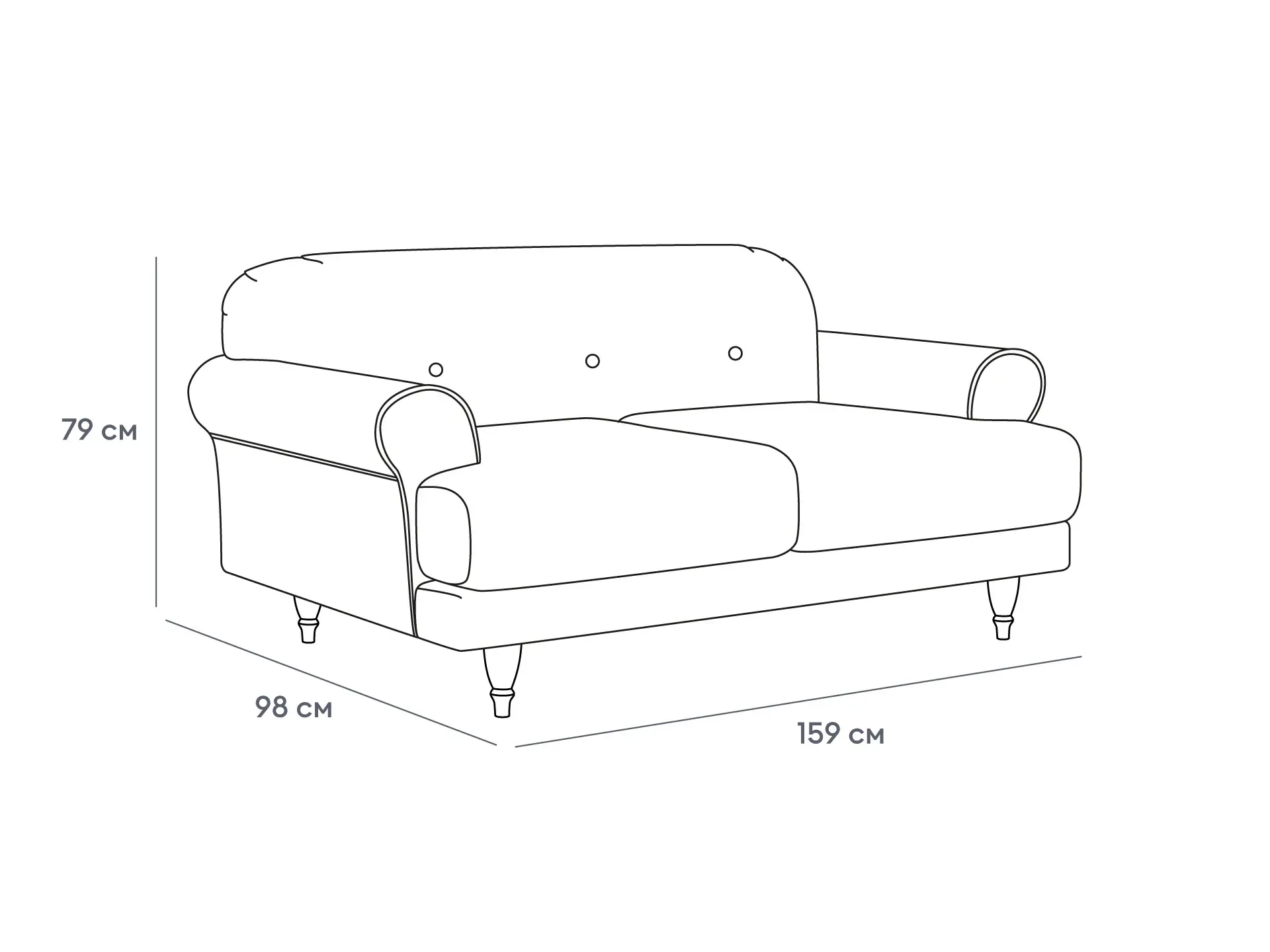 Двухместный диван Italia на деревянных ножках - модель классического европейского дизайна. Прямоугольное сиденье, образованное двумя подушками, обеспечивает комфортную посадку. Спинка с закругленными краями делает изделие гармоничным и плавным. Деревянные круглые ножки с фигурной обработкой создают ощущение невесомости и легкости, диван словно «парит» в пространстве. Невысокие подлокотники закруглены наружу, изюминку их формы по достоинству можно оценить при отдыхе лежа. Спинка украшена пуговицами стяжек – черта стилистики ретро.|Сочетание в каркасе деревянного бруса еловых пород с МДФ обеспечивает прочность и основательность. В меру мягкие, эластичные и износоустойчивые наполнители спинки и подушек сиденья – пенополиуретан и синтепон отвечают за качество вашего отдыха в любом положении. Широкий выбор материала обивки по цвету и фактуре. Italia – лаконичный диван с особенной эстетикой. Недаром он носит название страны, которая ассоциируется с искусством, культурой и утонченностью. В зависимости от стиля интерьера и декора диван Italia может выглядеть романтично, строго или изысканно.