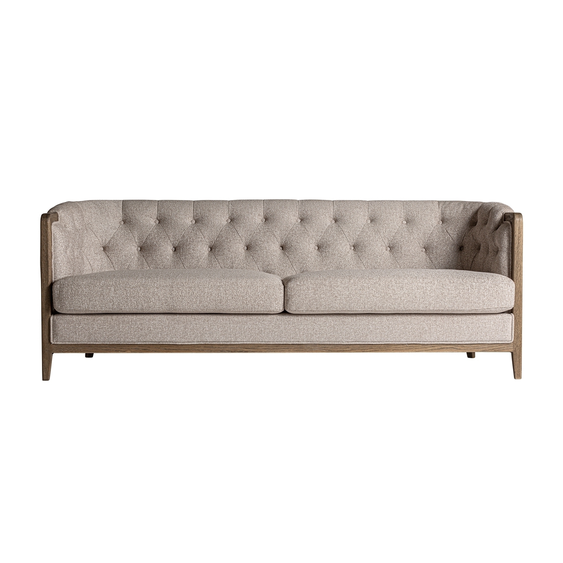 Диван Silz в колониальном стиле, изготовлен из бежевого ясеня в сочетании с полиэстером. Съемное изделие.