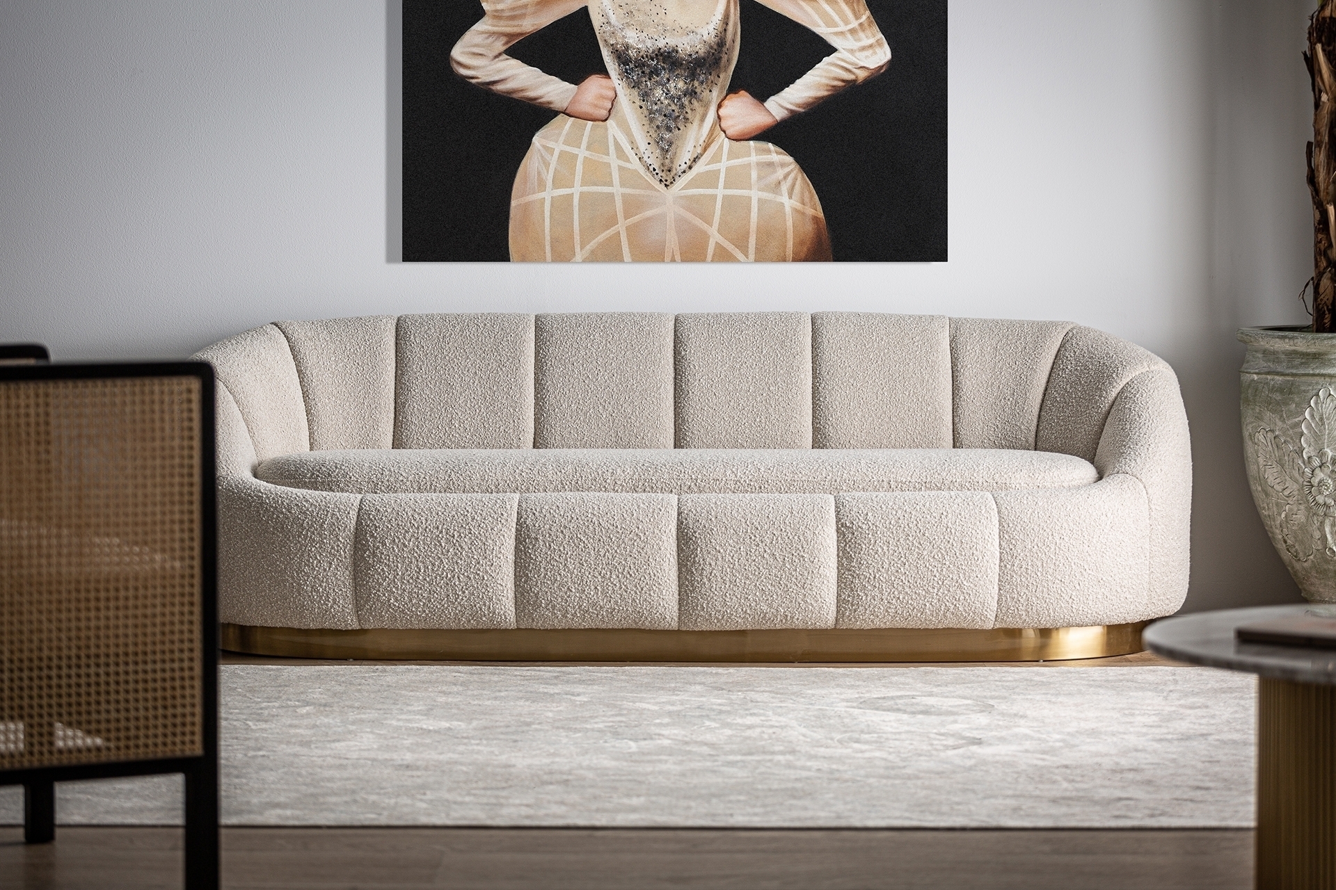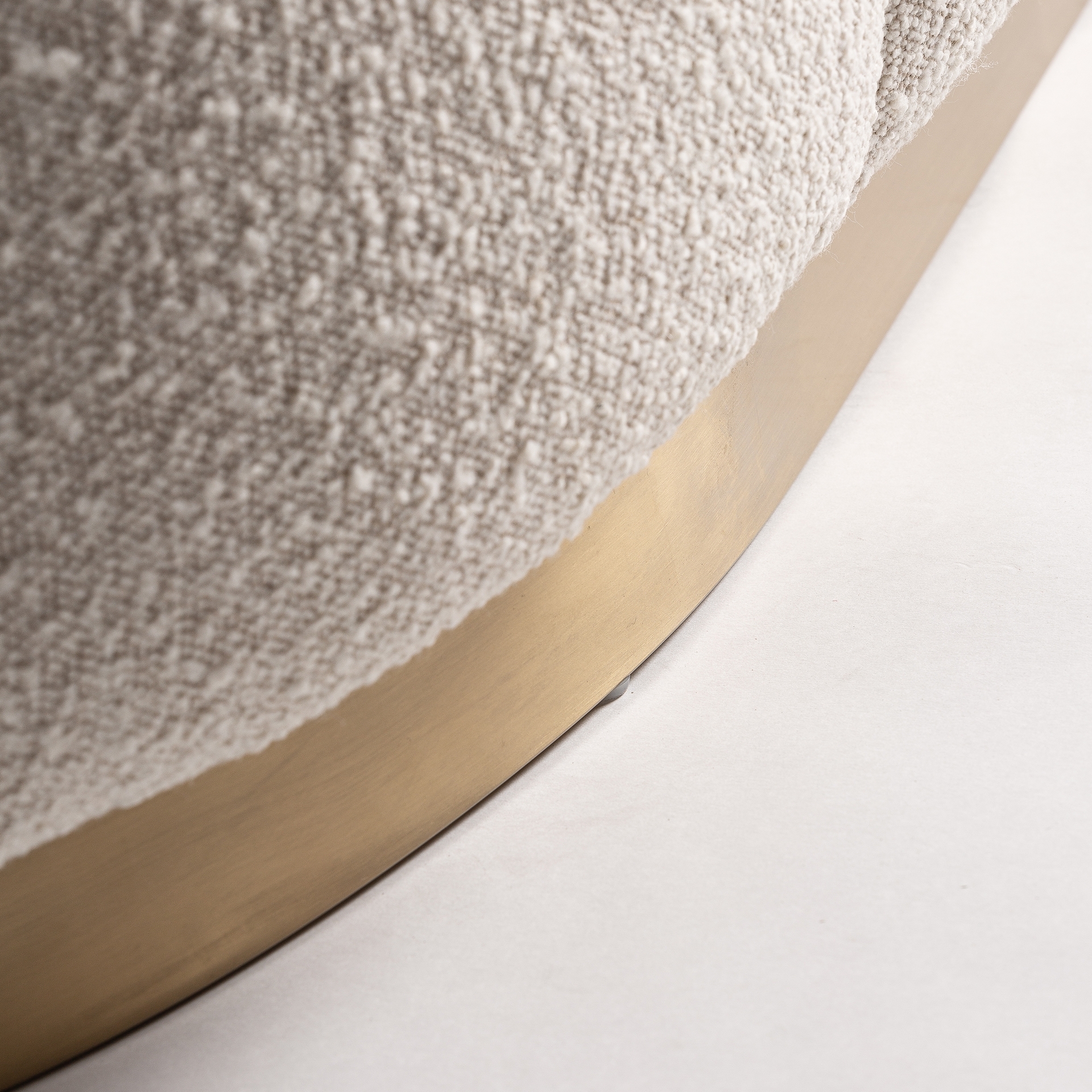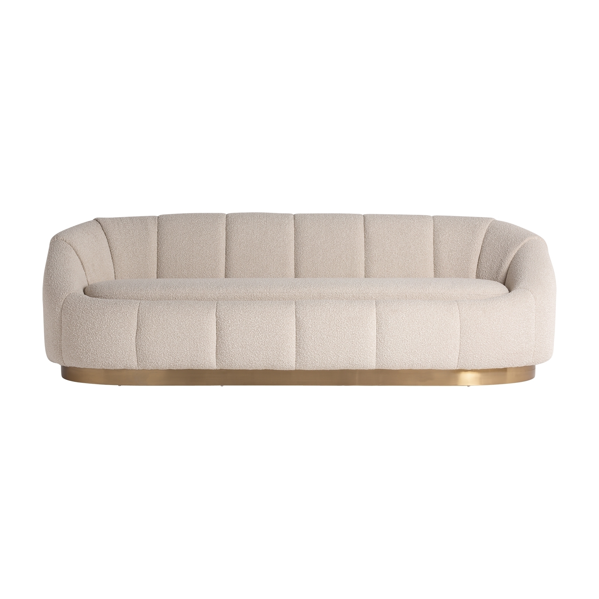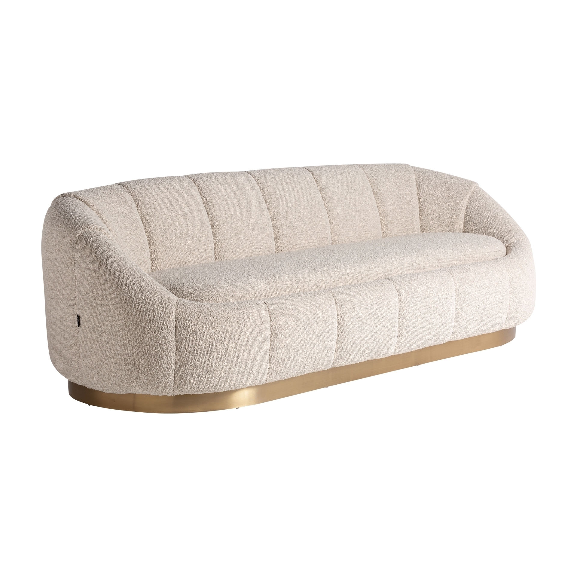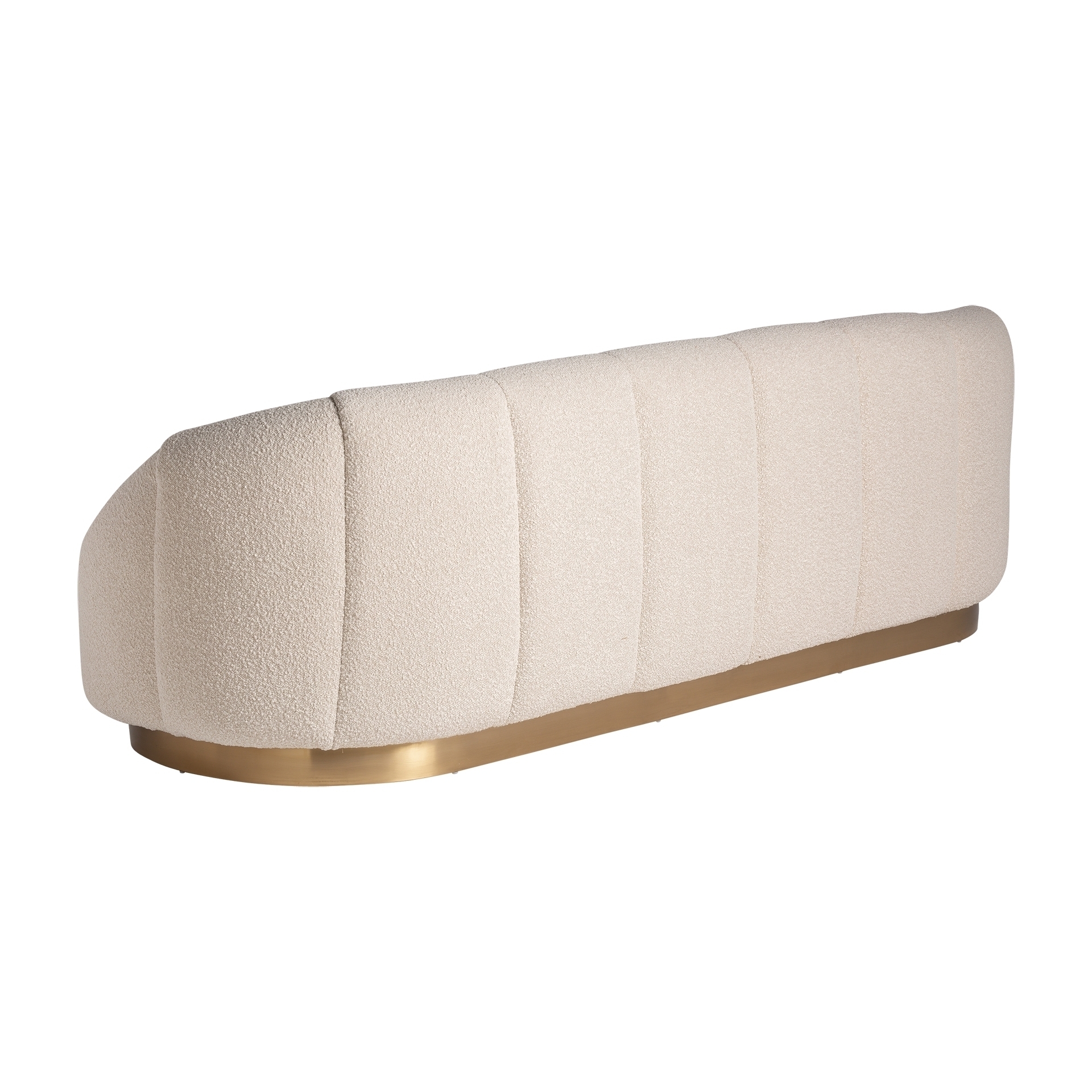 Диван Thyez-букле, бело-золотой, стиль ар-деко. Изготовлен из древесины сосны в сочетании со сталью.