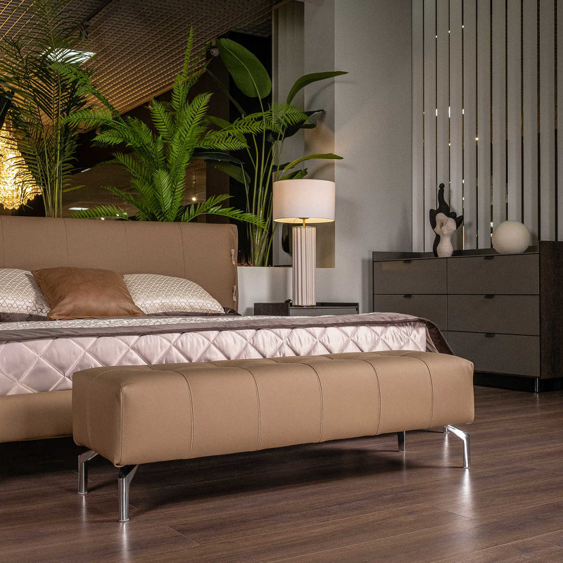 Банкетка в отделке коричневой экокожей от итальянского бренда Fratelli Barri. Каркас выполнен из массива дуба, ножки — из прочного металла. Сиденье декорировано роскошной каретной стяжкой. Составляет идеальную пару кровати (артикул FB.BD.CPT.1) из той же коллекции. Данный предмет — часть новой коллекции Concept от Fratelli Barri, включающей всю корпусную мебель для спальни, гостиной и столовой. Вы можете оформить интерьер вашей квартиры или дома в едином стиле.
