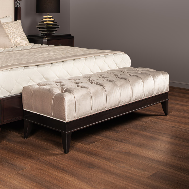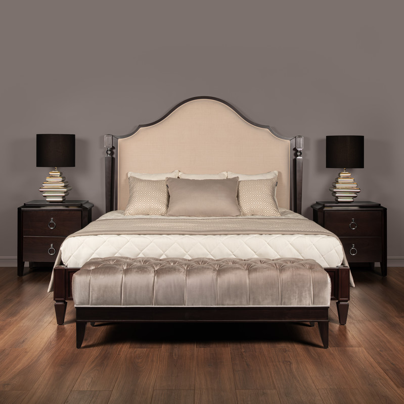 Банкетка в стиле неоклассика от Fratelli Barri. Изготовлена из массива дерева в шпоне вишни. Обивка серебристо-серым велюром и декор стежкой капитоне с пуговицами в ткани. Модель принадлежит к коллекции мебели Mestre в стиле неоклассика от Fratelli Barri. Здесь вы можете найти мебель для гостиной, столовой и спальни: сотни вариантов доступны для комбинации друг с другом.