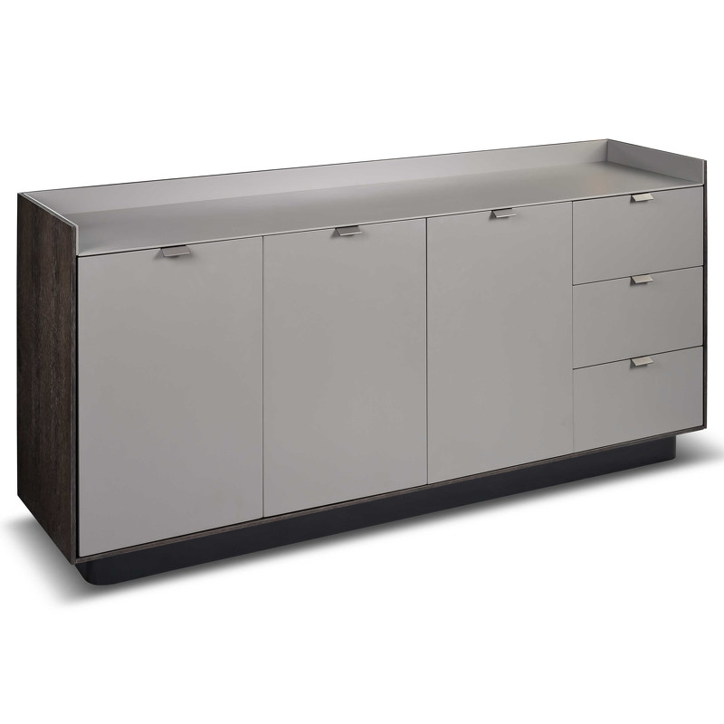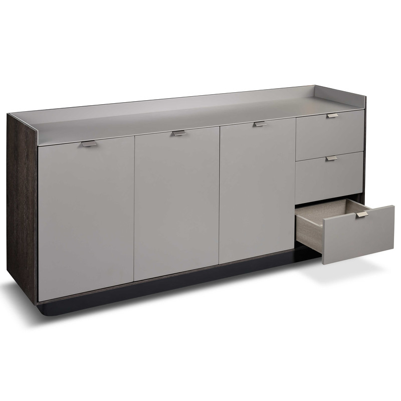 Буфет с 3 ящиками и 2 дверцами от итальянского бренда Fratelli Barri. Каркас из высококачественной МДФ. Столешница в отделке шпоном дымчатого дуба, фасады ящиков в отделке бежевым матовым лаком. Данный предмет — часть новой коллекции Concept от Fratelli Barri, включающей всю корпусную мебель для спальни, гостиной и столовой. Вы можете оформить интерьер вашей квартиры или дома в едином стиле.