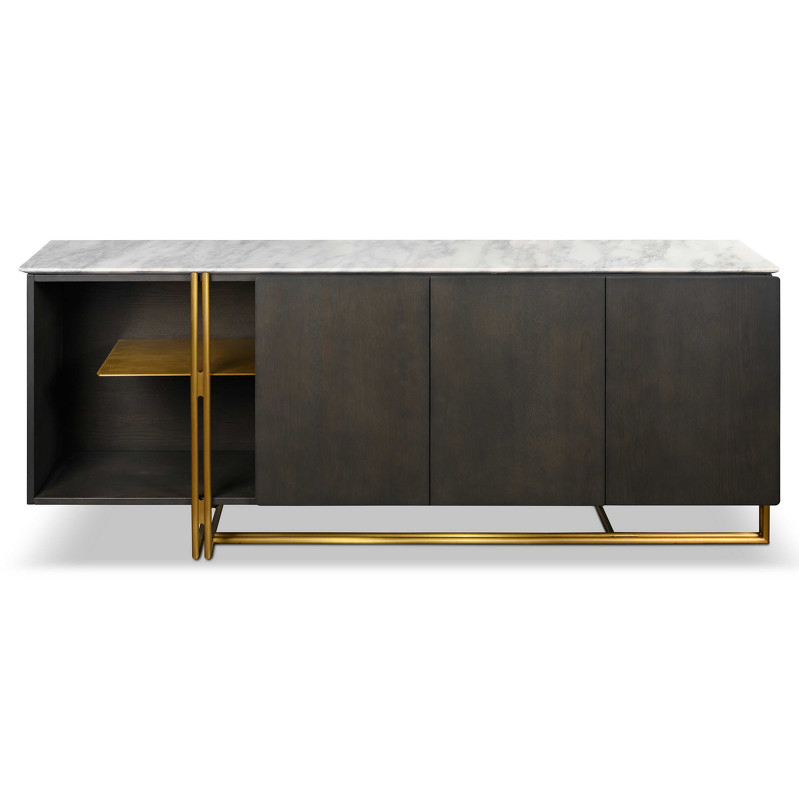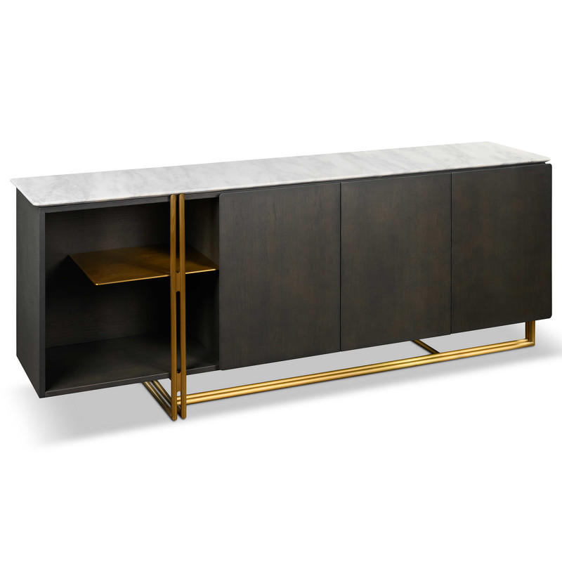 Роскошный буфет с золотыми элементами от итальянского бренда Fratelli Barri. Столешница изготовлена из натурального мрамора, ножки — из алюминия. Модель изготовлена из высококачественной МДФ. Буфет оснащен 3 дверцами с механизмом открывания soft-closing и открытой полкой. Данный предмет — часть новой коллекции Concept от Fratelli Barri, включающей всю корпусную мебель для спальни, гостиной и столовой. Вы можете оформить интерьер вашей квартиры или дома в едином стиле.