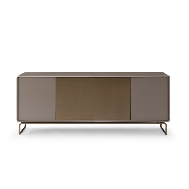 Буфет в современном стиле от итальянского бренда Fratelli Barri - стильный и функциональный предмет мебели для современной столовой или гостиной. Буфет оснащен четырьмя распашными дверцами, что позволяет организовать удобное хранение без визуального шума. Буфет выполнен из высококачественного МДФ высокой плотности. Корпус выполнен в отделке матовым серо-бежевым лаком. Ножки и фасады двух дверей в цвете бронза WJ-09.