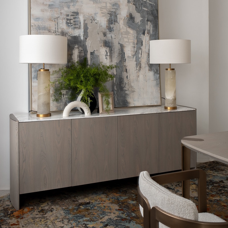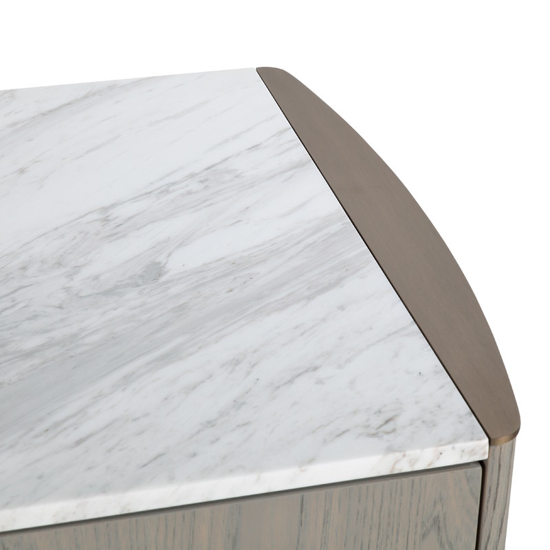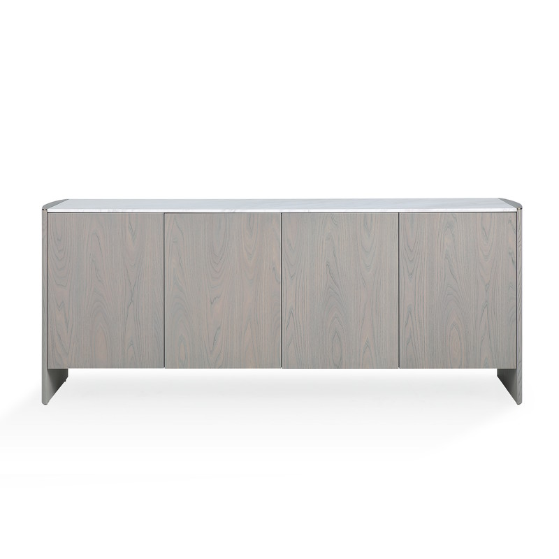 Изящный и строгий буфет Noli от бренда Fratelli Barri. Мягкие закругленные формы, натуральные тона в отделке, разнообразие материалов - все это делает буфет максимально актуальным и трендовым. Сочетает в себе и сложный серо-бежевый оттенок натурального шпона вяза, и вставки из нержавеющей стали в серо-бежевом цвете, и роскошный натуральный мрамор в светло-серых тонах из Греции. Буфет оснащен четырьмя распашными дверцами, за каждой из которых расположена полка. Петли у буфета 90 градусов, оснащены системой плавного закрывания sift close.