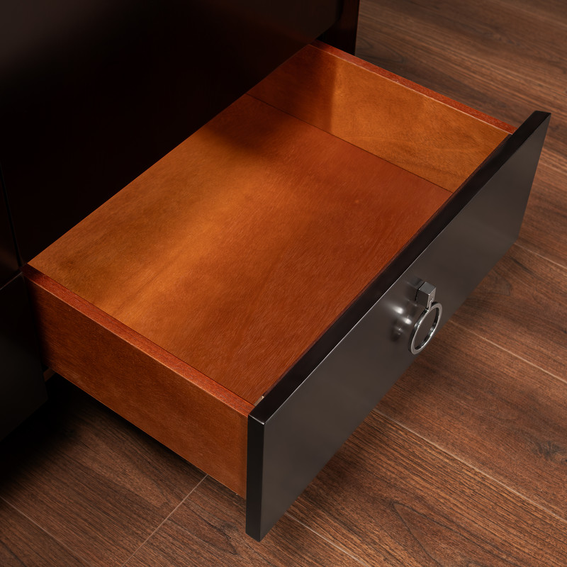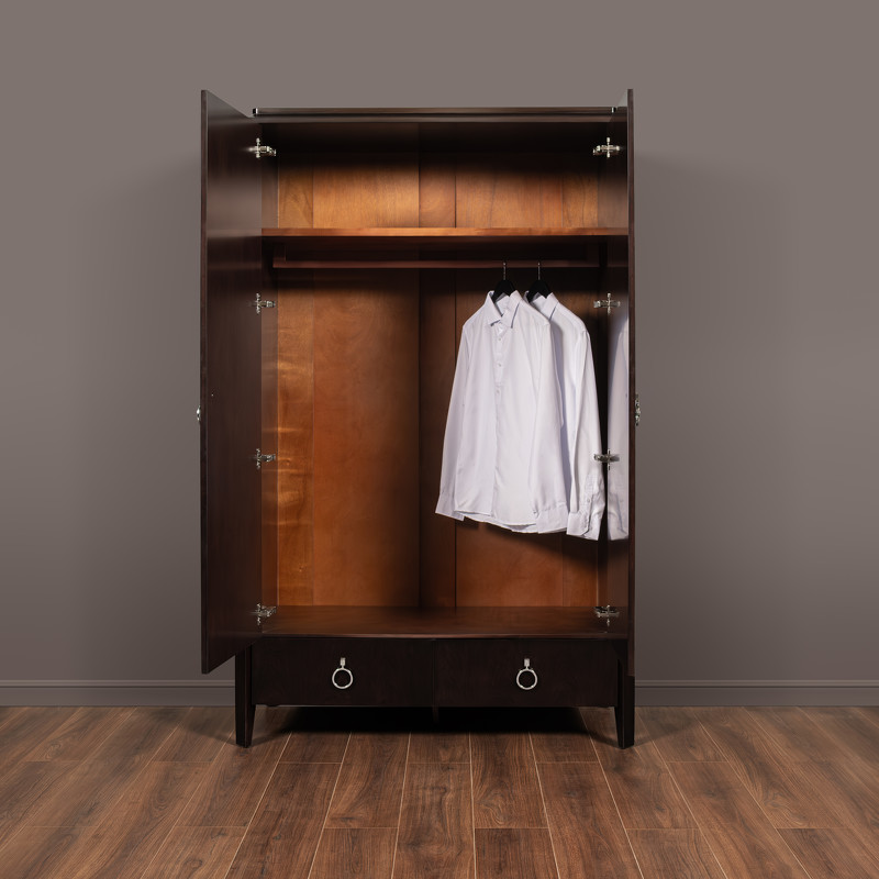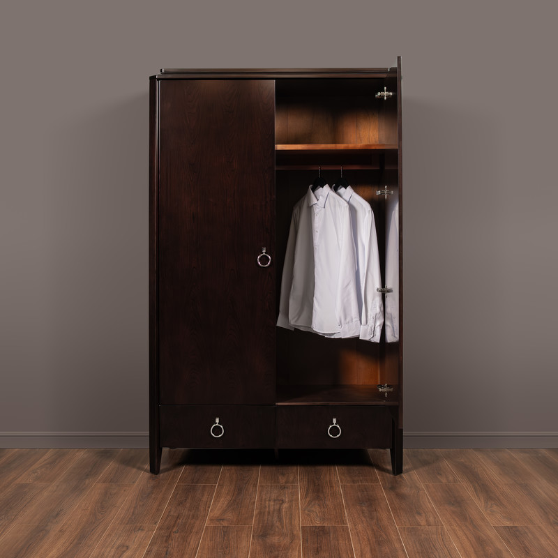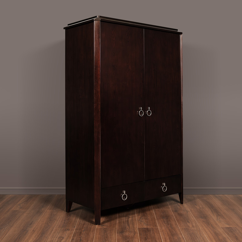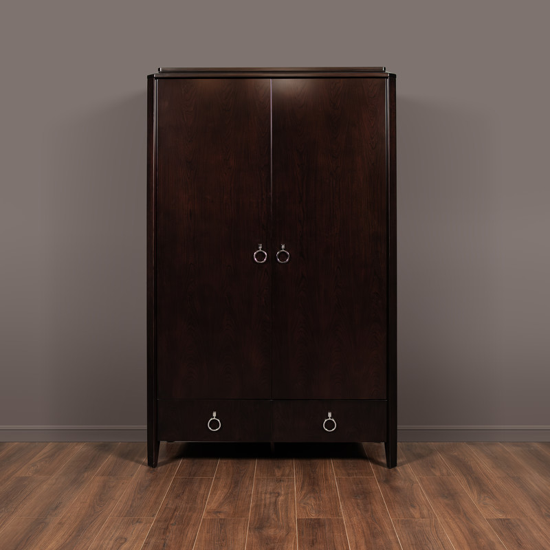 Гардероб в стиле неоклассика от итальянского бренда Fratelli Barri. Модель имеет 2 распашные дверцы и 2 ящика снизу. Классический вариант для просторной европейской спальни. Каркас — массив дерева и высококачественная МДФ высокой плотности, отделка — натуральный шпон вишни. Все выдвижные ящики снабжены направляющими. Ручки хромированные. Модель принадлежит к коллекции мебели Mestre в стиле неоклассика от Fratelli Barri. Здесь вы можете найти мебель для гостиной, столовой и спальни: сотни вариантов доступны для комбинации друг с другом.