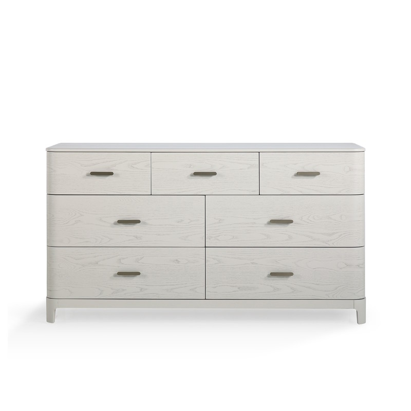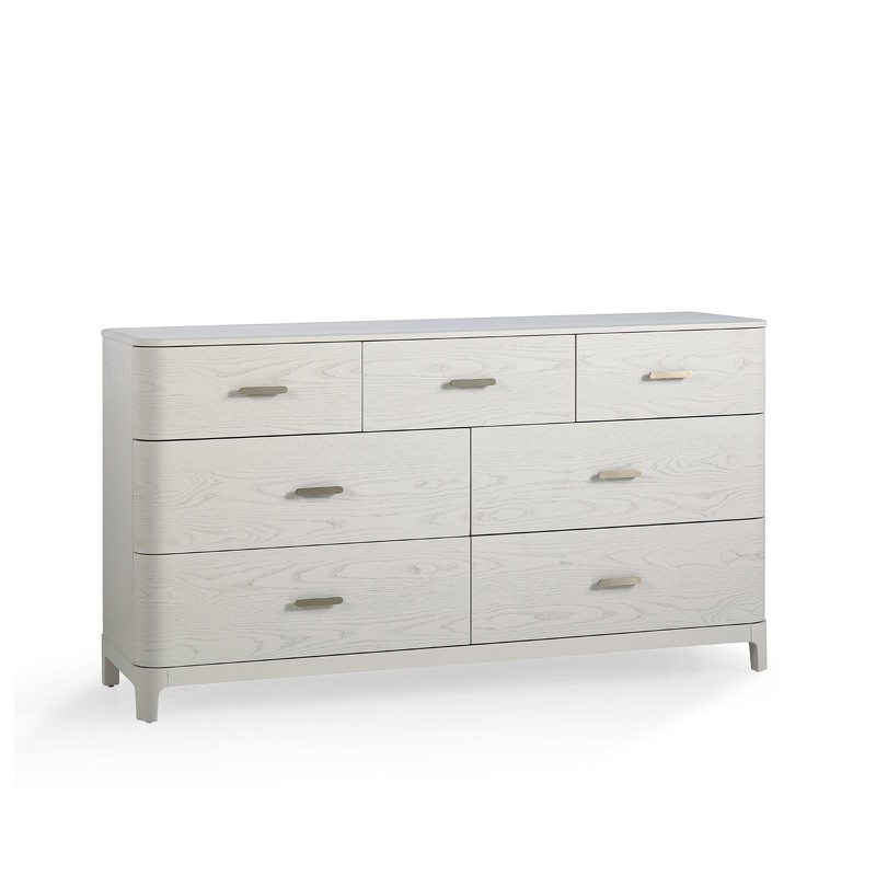 Вместительный комод от итальянского бренда Fratelli Barri коллекции Bianca. Закругленные углы комода делают его эргономичным и безопасным. Корпус комода изготовлен из высококачественного МДФ, ножки - массив дерева, ручки металл. Отделка - натуральный шпон ясеня. Комод оснащен семью выдвижными ящиками, благодаря чему можно разместить все необходимое, обеспечивая удобное и доступное хранение. Ящики со скрытыми направляющими и системой плавным закрывания "soft close". Дно верхних ящиков покрыто бархатной тканью черного цвета.