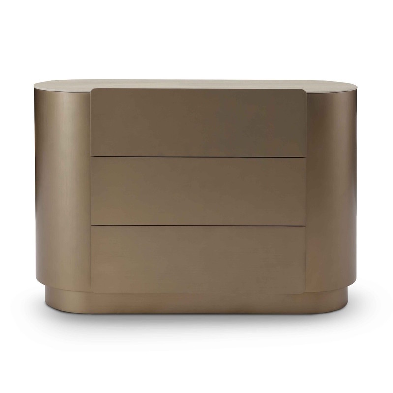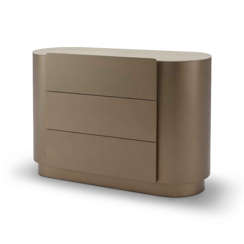 Комод от бренда Fratelli Barri, выполнен в современном стиле. Оснащен тремя выдвижными ящиками, благодаря которым можно обеспечить удобное и доступное хранение. Комод выполнен в отделке цвета латунь, ящики внутри меламин.
