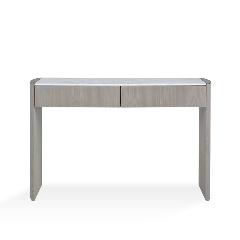 Консоль Noli от бренда Frattelli Barri - это изящный и полезный предмет интерьера. Сочетание сложного серо-бежевого оттенка натурального шпона вяза, вставки из нержавеющей стали в серо-бежевом цвете, роскошный натуральный мрамор в светло-серых тонах из Греции - все это делает консоль актуальной и акцентной. Консоль оснащена двумя выдвижными ящиками cо скрытыми направляющими и системой плавного закрывания "soft close". Дно ящиков покрыто бархатной тканью бежевого цвета.