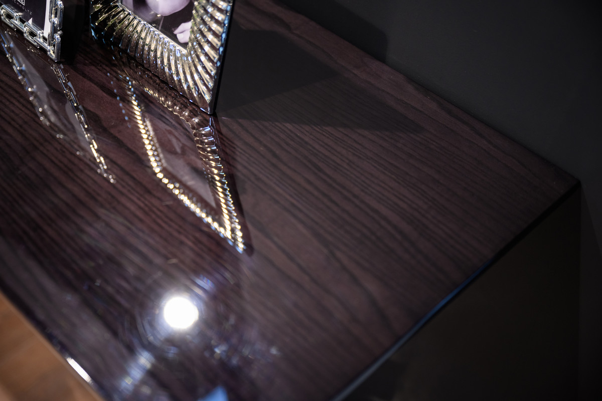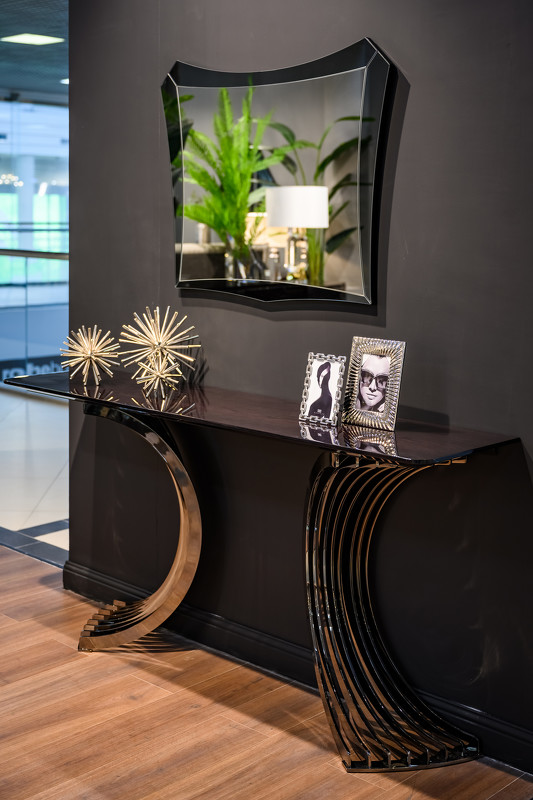 Консоль выполнена в стиле Ар-деко. Изогнутые ножки дополнены столешницей из высококачественного шпонированного МДФ высокой плотности.