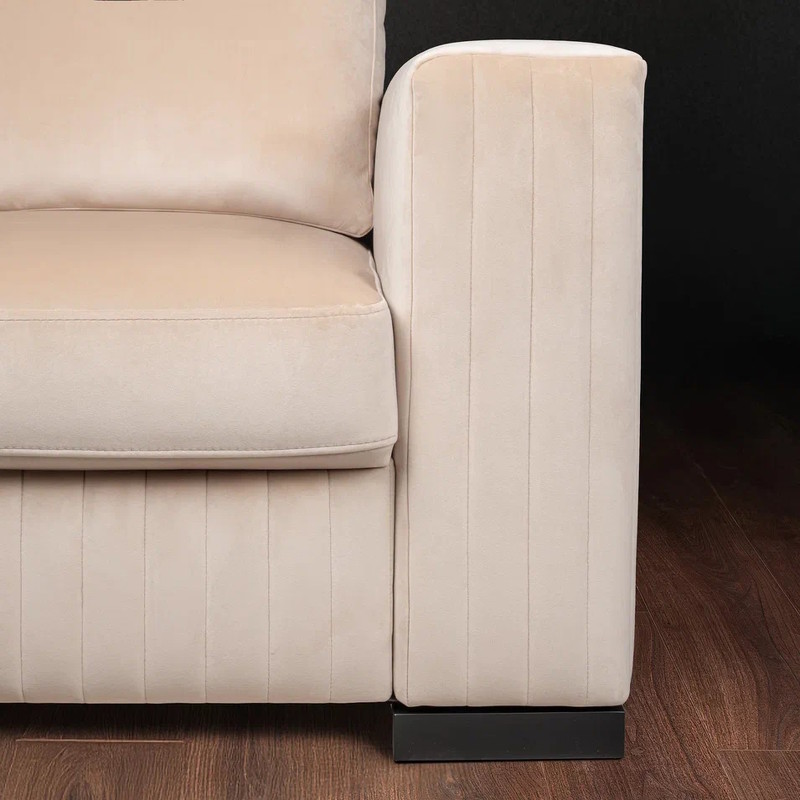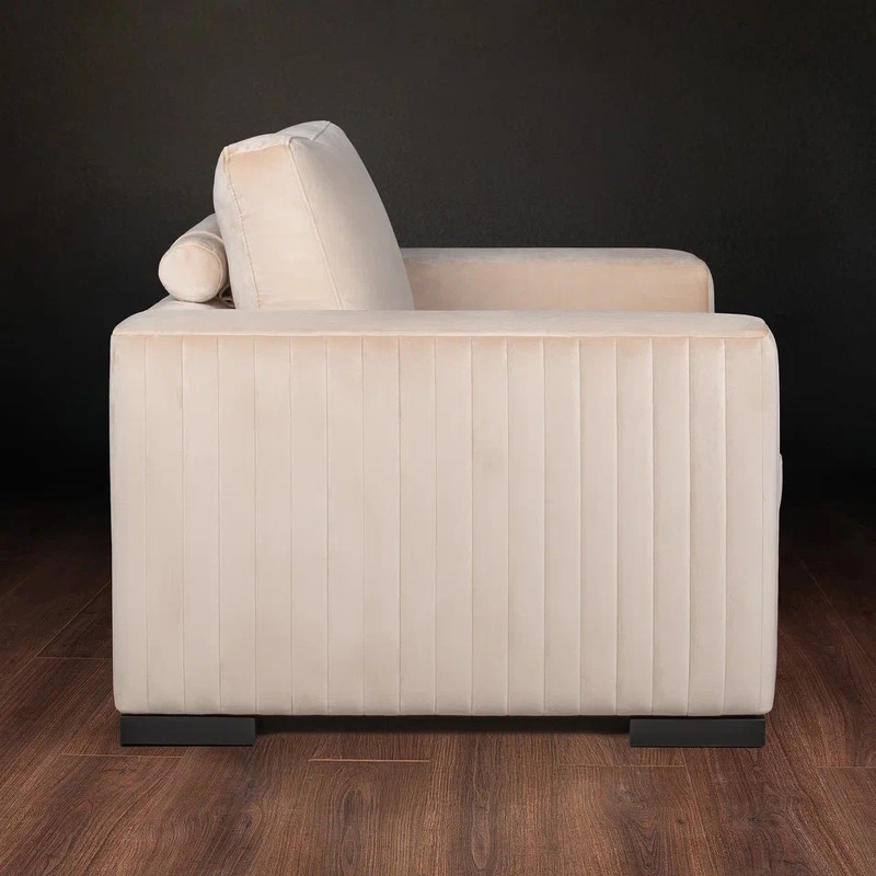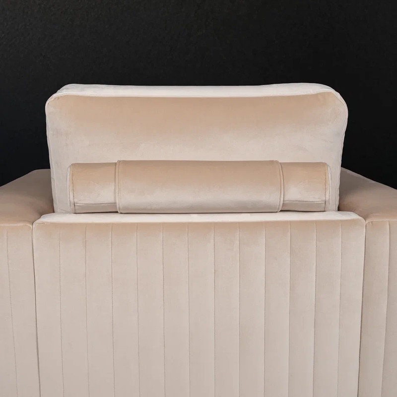 Кресло Marriotto от итальянского бренда Fratelli Barri, утонченное сочетание современного стиля и функционала. Каркас кресла изготовлен из металла и МДФ. Сиденье выполнено из высокоэластичного ППУ марки HR3020, плотностью 30 кг/м3. Дополнительно обернуты высокообъёмным материалом "холотек", плотностью 200 г/м2. Кресло в обивке тканью бежевых тонов. Коллекция ткани Paddington состоит из модифицированного полиэстера, что позволяет волокнам пропускать свет и создавать перламутровый эффект, напоминающий натуральный жемчуг. Ткань износостойкая и долговечная за счет плотного ворса. Тип ткани: микровелюр. Состав: 100% полиэстер.