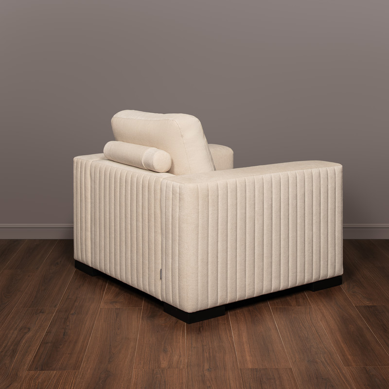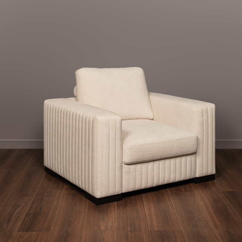 Кресло Marriotto от итальянского бренда Fratelli Barri, утонченное сочетание современного стиля и функционала. Каркас кресла изготовлен из металла и МДФ. Сиденье выполнено из высокоэластичного ППУ марки HR3020, плотностью 30 кг/м3. Дополнительно обернуты высокообъёмным материалом "холотек", плотностью 200 г/м2. Ткань обивки из коллекции Koma – плотная и фактурная из петельчатых ворсинок, идеально подходит для обивки диванных групп, кроватей и подушек. Тип ткани: букле. Состав ткани: 100% полиэстер. Плотность: 650 гр/м2. Устойчивость к истиранию: 50000 циклов.