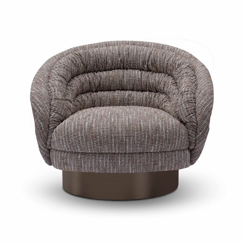 Уютное кресло от бренда Fratelli Barri. Его округлые формы и мягкие линии создают ощущение уюта и расслабленности, делая кресло отличным выбором для комфортного отдыха. Кресло полностью выполнено в ткани на металлическом основании цвета латунь. Наполнитель - экологичный пенополиуретан. Кресло оснащено поворотным механизмом.