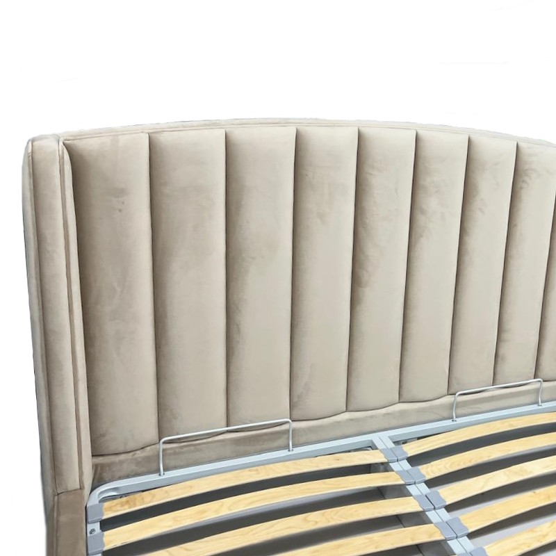 Роскошная двуспальная кровать с вертикальной стежкой на изголовье. Модель выполнена в стиле неоклассика и также подойдет под интерьеры в стиле ар-деко и современный. Из-за цвета ножек кровать прекрасно сочетается с корпусной мебелью из разных коллекций фабрики Fratelli Barri в коричневом оттенке древесины. Каркас изготовлен из высококачественной МДФ высокой плотности и березовой фанеры (Россия), многослойного материала, изготавливаемого путём склеивания специально подготовленного шпона. Для повышения прочности фанеры слои шпона накладываются так, чтобы волокна древесины каждого листа были перпендикулярны соседним, поэтому, чтобы направления внешних слоёв совпадали, количество слоёв шпона обычно нечётное: три и более. Ламели решетки изготовлены из 100% массива березы. Ткань обивки коллекции Bella - нежный ворс благодаря нейлону в составе. Мягкий, приятный взгляду перелив, как у дорогих итальянских велюров. Легкий уход при эксплуатации, ткань даже можно стирать. Хлопок в составе снимает статическое напряжение. Тип ткани: микровелюр. Состав ткани: 80% полиэстер, 15% хлопок, 5% нейлон. Износостойкость: 60000. Размер спального места — 160*200 см. Покрывала, подушки и матрас не входят в комплект поставки.
