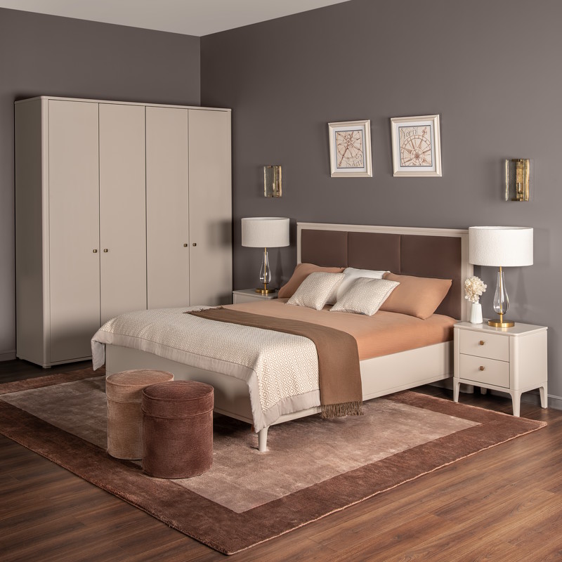 Элегантная двуспальная кровать от итальянского бренда Fratelli Barri. Модель выполнена в современном стиле, с легкой атмосферой французского дизайна. Данная коллекция отлично впишется как в современный, так и в неоклассический интерьер или в квартиру в стиле прованс. Закругленные углы базы делают кровать эргономичной и безопасной. А высокие ножки позволяют иметь беспрепятственный доступ для уборки и проезда робота-пылесоса. Каркас кровати изготовлен из высококачественного МДФ, ножки - массив дерева. Отделка - матовый лак светло-серого оттенка. Мягкое изголовье обито тканью велюр в темно-бежевых тонах. Ткань украшена декоративной геометрической строчкой. Наполнение изголовья - пенополиуретан. Размер спального места 160*200 см. Кровать комплектуется решеткой. Текстиль и матрас не входят в комплект поставки.