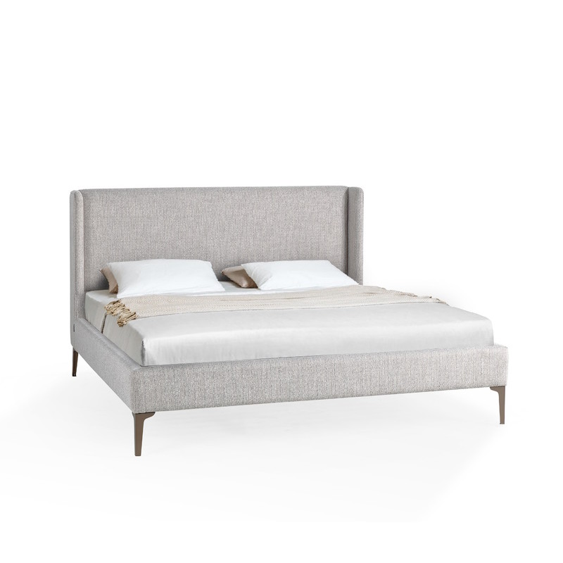 Двуспальная кровать с мягким изголовьем от итальянского бренда Fratelli Barri. Изголовье и база кровати обиты тканью в бежевых тонах, ножки - матовая нержавеющая сталь. Размер спального места — 180*200 см. Постельные принадлежности и матрас не входят в комплект.