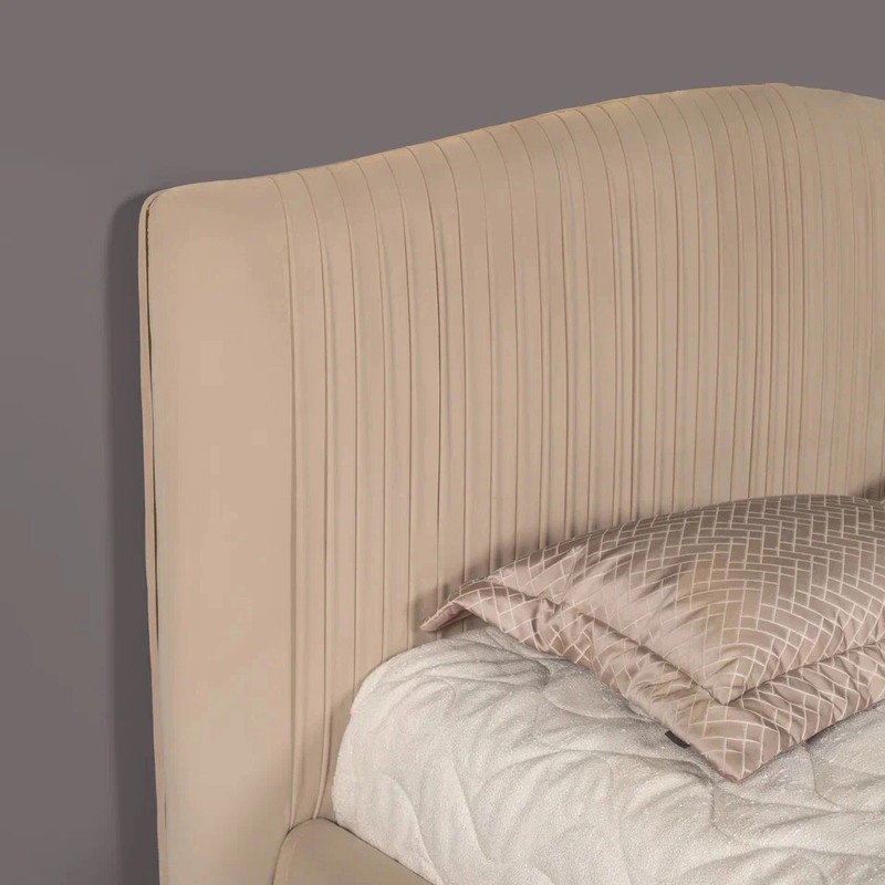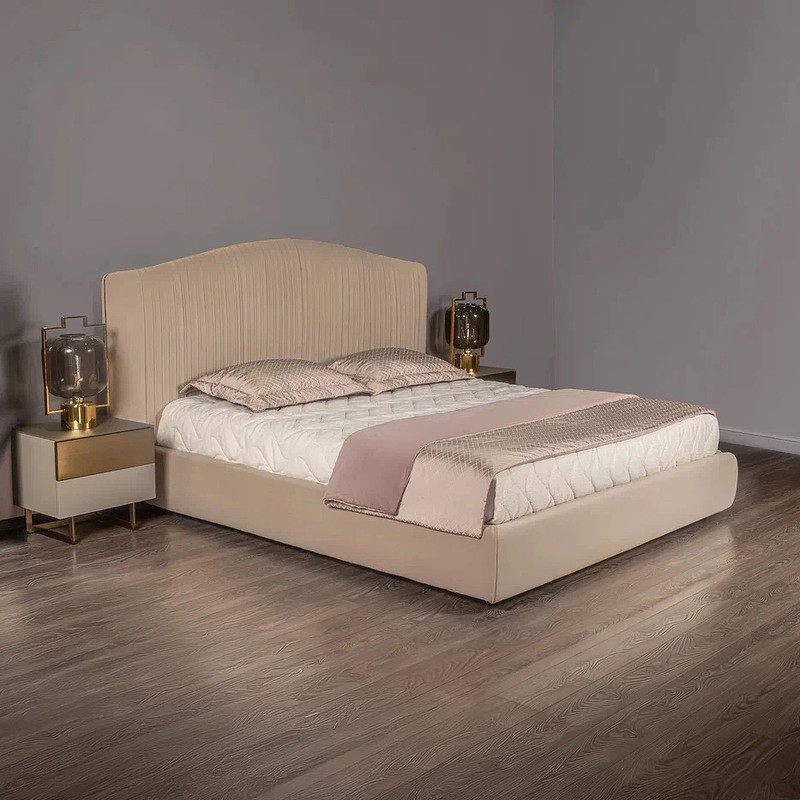 Кровать с мягким изголовьем от итальянского бренда Fratelli Barri. Металлические декоративные детали - цвет латунь. Размер спального места — 160*200 см. Постельные принадлежности и матрас не входят в комплект.