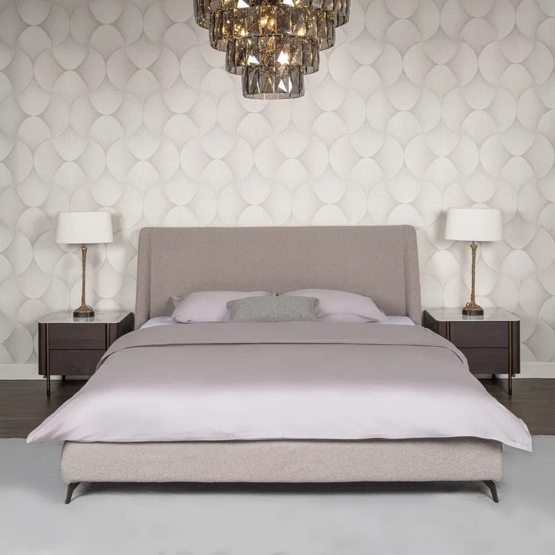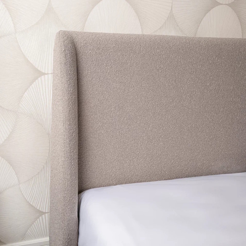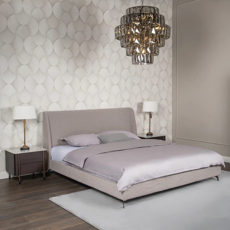 Двуспальная кровать в современном стиле с мягким изголовьем от бренда Fratelli Barri. Кровать может стоять в центре помещения, так как задняя стека изголовья обита той же тканью, что и вся кровать. Кровать обита текстурированной тканью букле в серых тонах, ножки из нержавеющей стали с черным порошковым покрытием. Кровать поставляется с решеткой. Размер спального места — 180*200 см. Текстиль и матрас не входят в комплект.