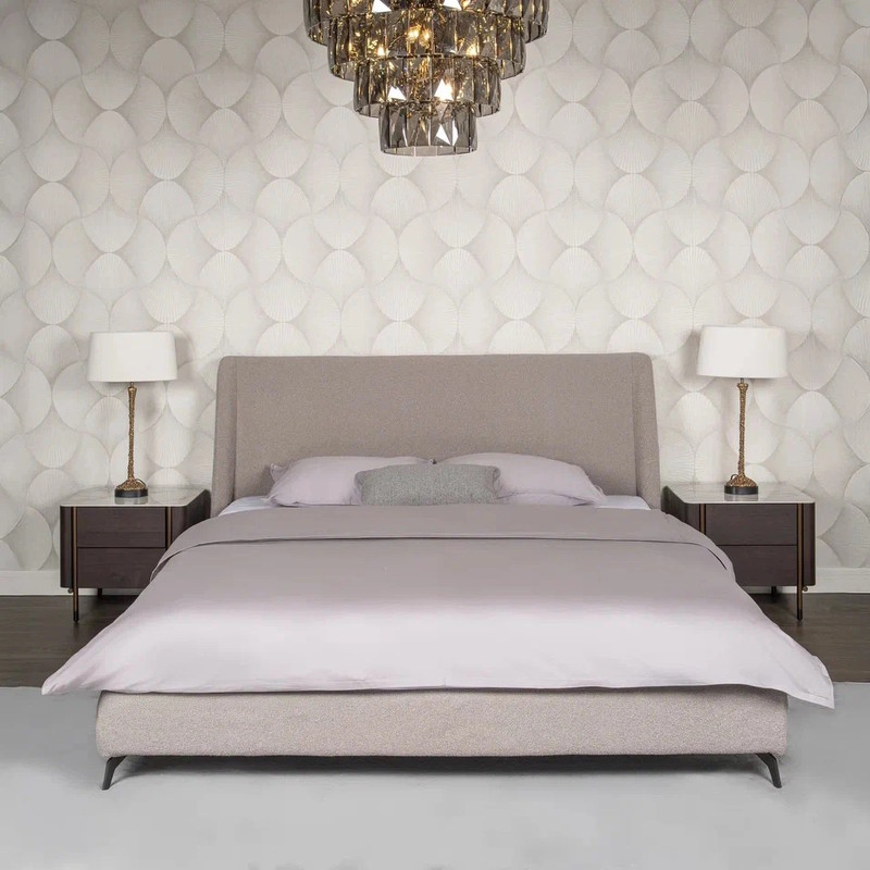 Двуспальная кровать с мягким изголовьем от итальянского бренда Fratelli Barri. Кровать обита текстурированной тканью из ассортимента фабрики, ножки металлические с черным порошковым покрытием. Размер спального места — 200*200 см. Постельные принадлежности и матрас не входят в комплект.