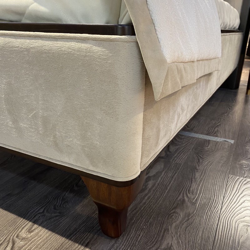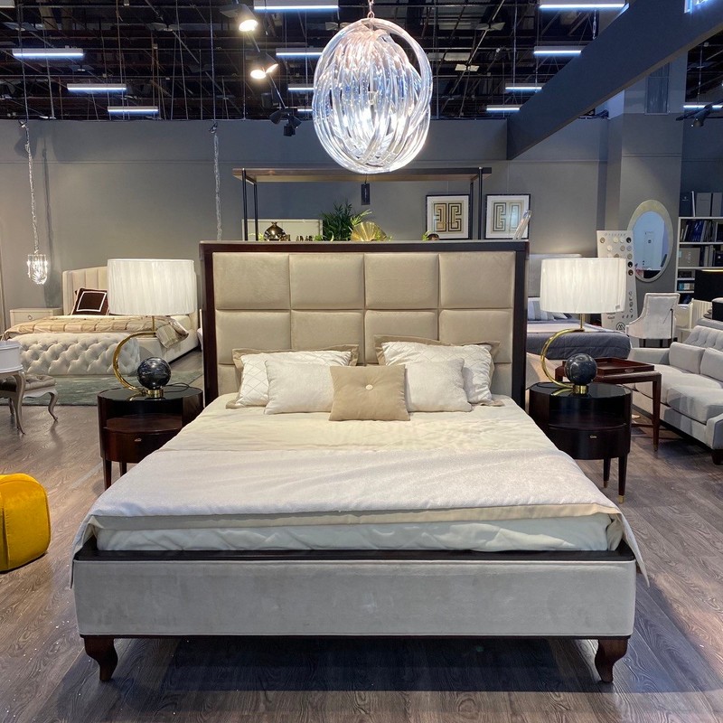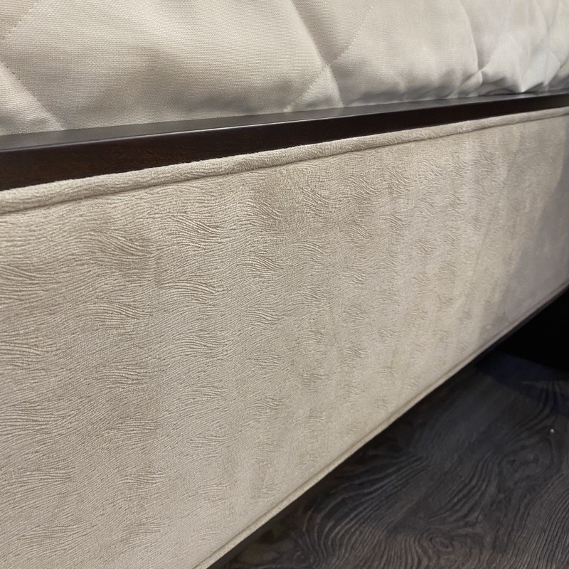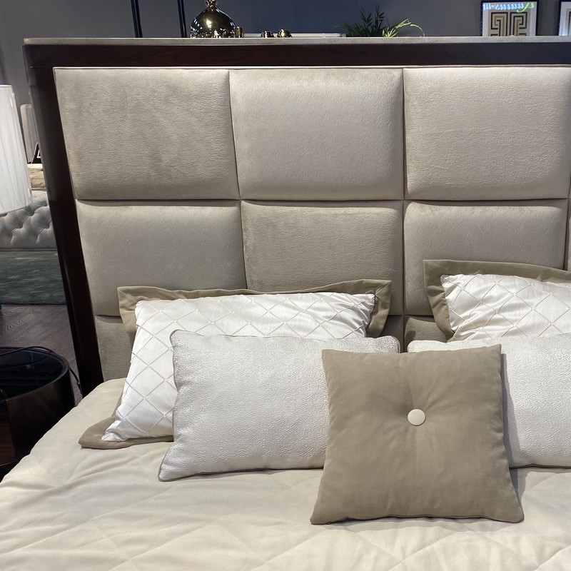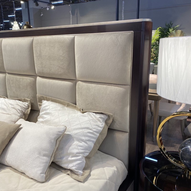 Двуспальная кровать с традиционным европейским силуэтом. Модель имеет изогнутые ножки и темный деревянный каркас. Изголовье имеет прямоугольную стежку, база также оформлена тканью. Оттенок можно выбрать из ассортимента фабрики. Кровать идеально сочетается с корпусной мебелью из коллекции Mestre фабрики Fratelli Barri. Размер спального места — 180*200 см. Покрывала, подушки и матрас не входят в комплект поставки. Решетка в комплекте.