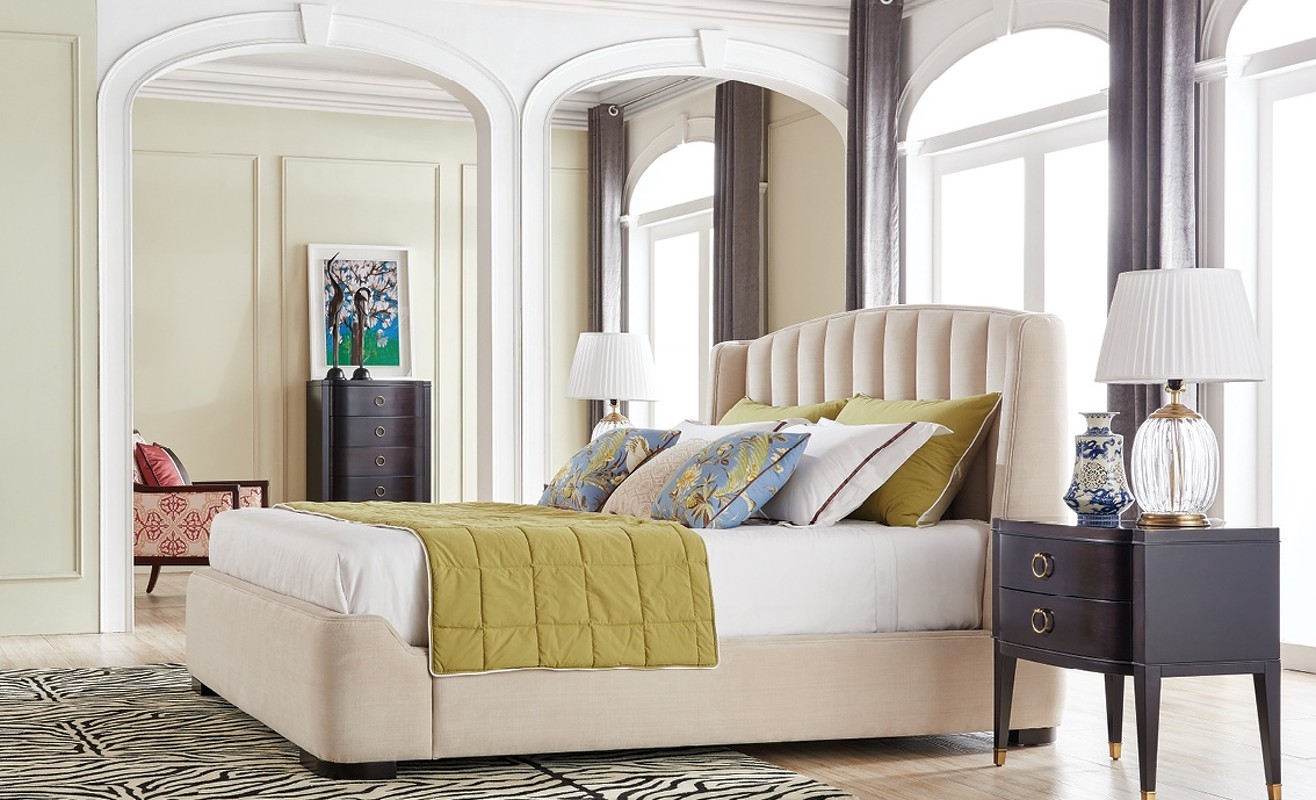 Роскошная двуспальная кровать Modena от итальянского бренда Fratelli Barri в неоклассическом стиле. Изголовье с загнутыми боковинками («ушами»). База модели красиво оформлена текстилем и имеет красивый изгиб во фронтальной зоне. Кровать идеально сочетается с корпусной мебелью из коллекций Modena и Mestre. Кровать выполнена из массива дерева и высококачественного МДФ класса Е1. Ножки кровати из массива дерева тонированного в темно-коричневый цвет. Ткань обивки из коллекции фабрики. Обратная сторона изголовья обита плотной технической тканью. Размер спального места — 180*200 см. Кровать поставляется в комплекте с решеткой. Покрывала, подушки и матрас не входят в комплект поставки.