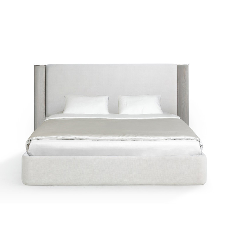 Элегантная двуспальная кровать коллекции Noli от бренда Fratelli Barri. Сочетание деревянных деталей в отделке натуральным шпоном ясеня и мягкой ткани шенилл в бежевых тонах создает в спальне атмосферу уюта и приятного спокойствия. Кровать выполнена из массива дерева и экологичного МДФ. Размер спального места — 180*200 см. Кровать поставляется с решеткой. Текстиль и матрас не входят в комплект.