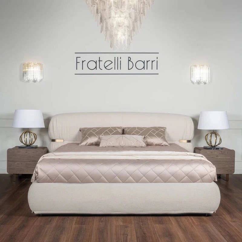 Двуспальная кровать с мягким изголовьем от итальянского бренда Fratelli Barri - воплощение уюта и современного стиля. Данная кровать является частью коллекции Pirri от Fratelli Barri и отлично будет сочетаться с другими предметами коллекции. Размер спального места — 160*200 см. Кровать поставляется в комплекте с решеткой. Постельные принадлежности и матрас не входят в комплект.