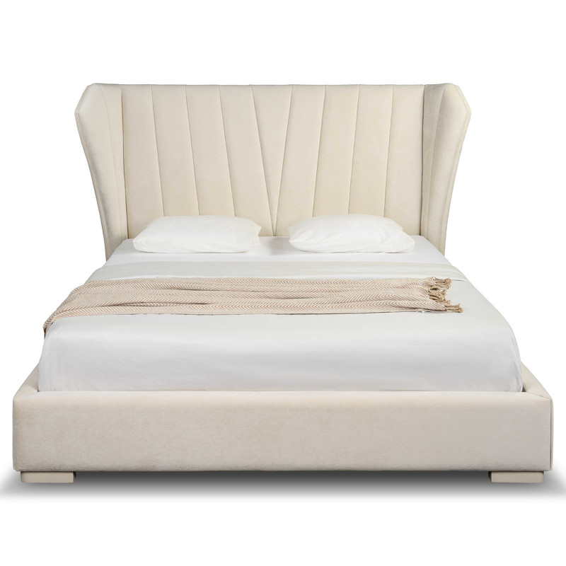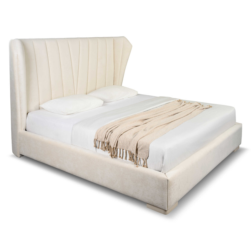Вдохновляющая модель двуспальной кровати Rimini от итальянского бренда Fratelli Barri с фигурным изголовьем. Симметричная наклоненная строчка на изголовье придает дополнительно шарма этой модели. Выполнена кровать из массива дерева и высококачественного МДФ класса Е1. Изголовье и база кровати обтянуты тканью из ассортимента фабрики в белых тонах. Тип ткани велюр. Состав ткани - 100% полиэстер. Ножки из массива в отделке бежевый матовый лак. Обратная сторона изголовья обита плотной технической тканью. Кровать прекрасно сочетается с корпусной мебелью из всех коллекций фабрики. Размер спального места — 180*200 см. Кровать поставляется в комплекте с решеткой. Покрывала, подушки и матрас не входят в комплект поставки.