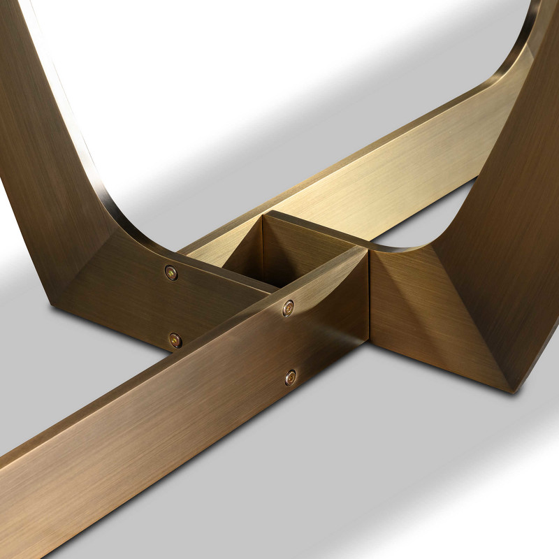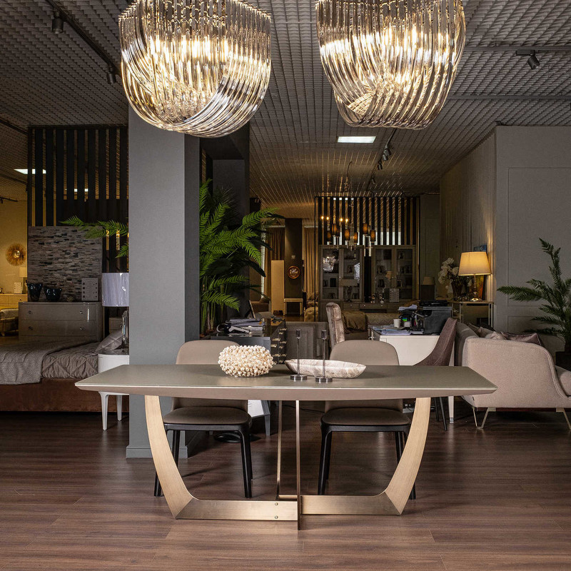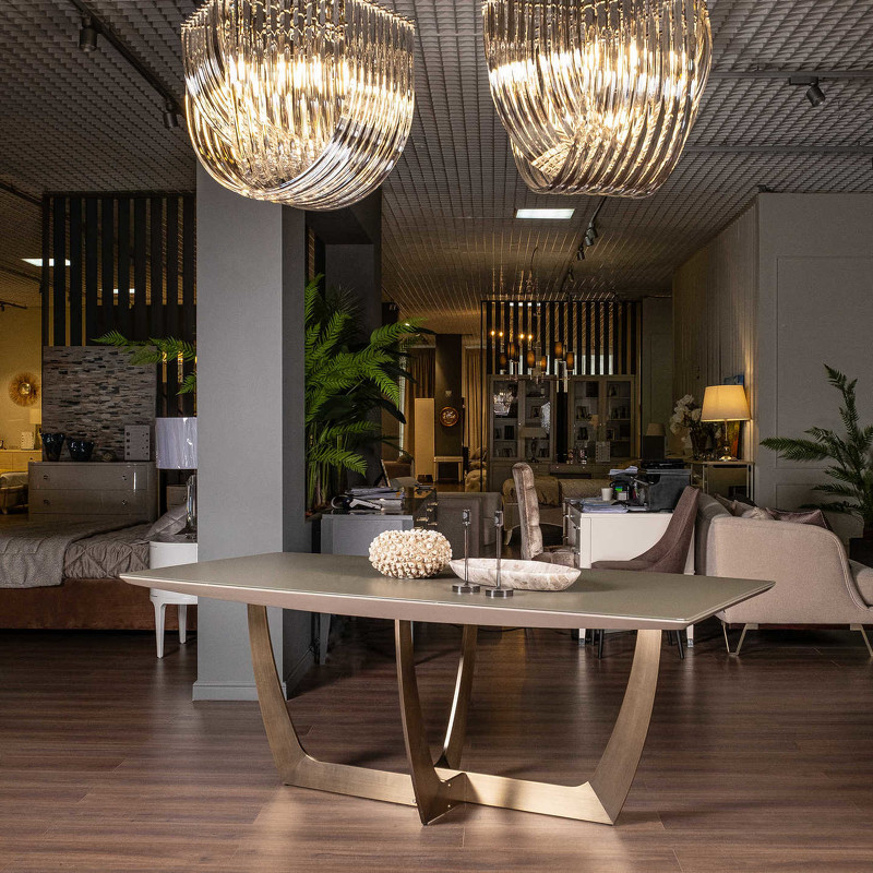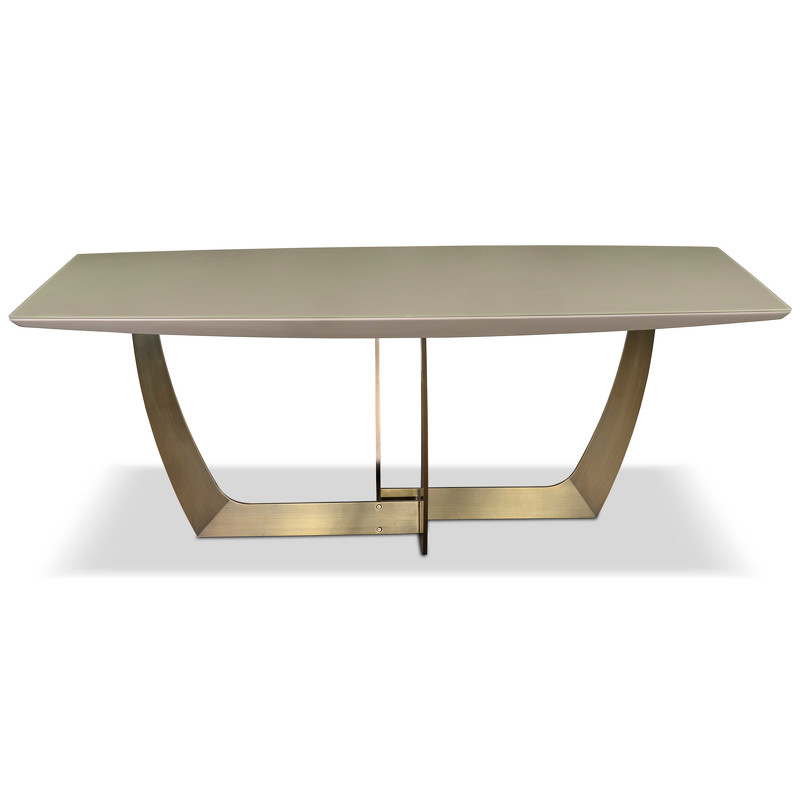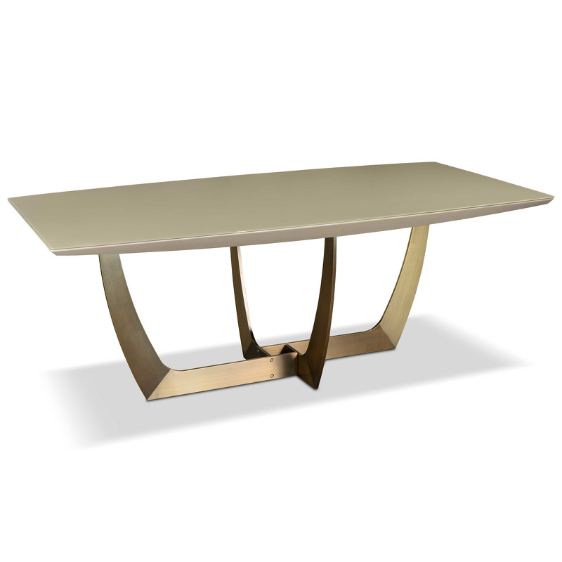 Обеденный стол на золотом каркасе от итальянского бренда Fratelli Barri. Фигурные ножки стола изготовлены из высококачественного металла. Столешница — из МДФ и закаленного стекла. Размер стола — 200*100 см (6–8 персон). Силуэтный предмет мебели, который украсит интерьер в стиле ар-деко, контемпорари, современный или джапанди. Подобный формат ножек также очень удобен в ежедневном использовании. Данный предмет — часть новой коллекции Concept от Fratelli Barri, включающей всю корпусную мебель для спальни, гостиной и столовой. Вы можете оформить интерьер вашей квартиры или дома в едином стиле.