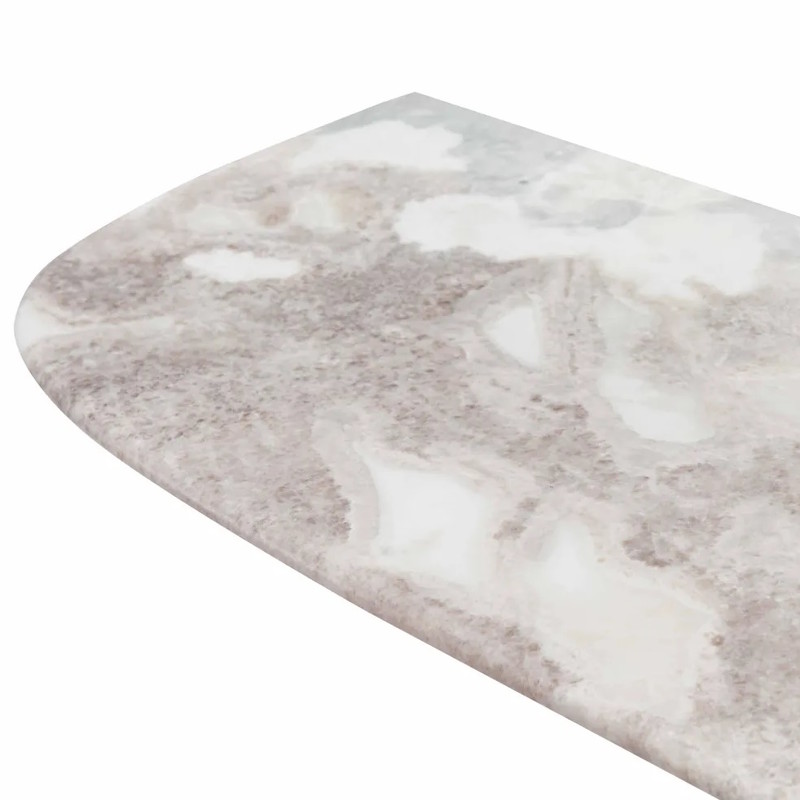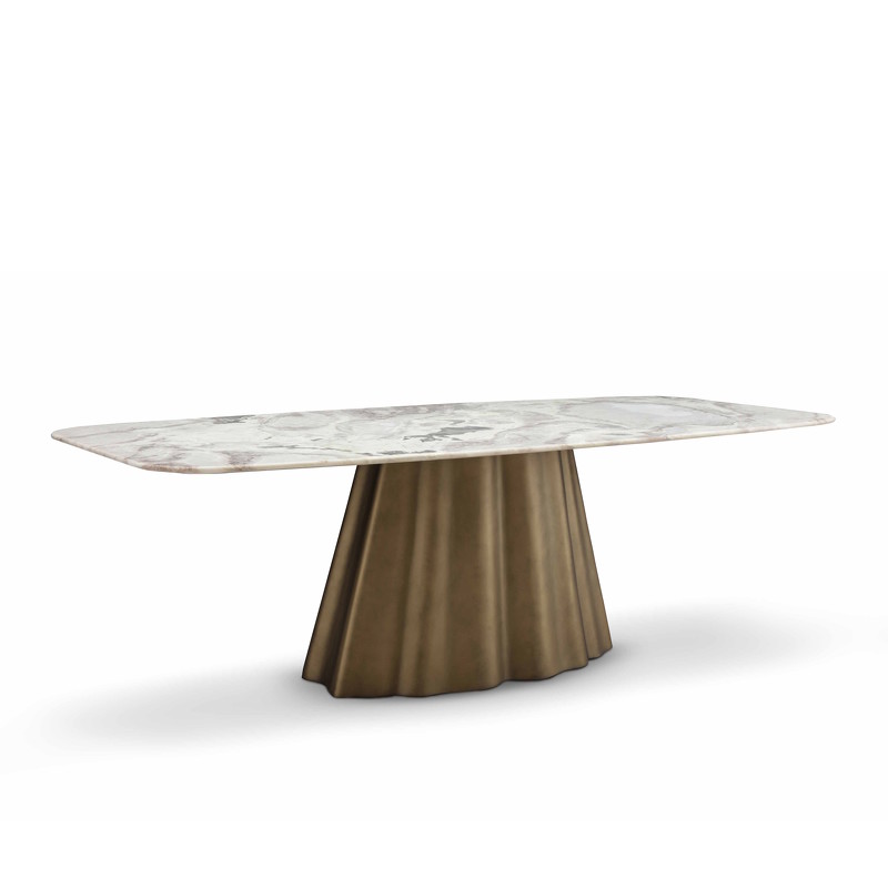 Обеденный стол от бренда Fratelli Barri - изящество и стиль для вашего интерьера. Столешница длинной 240 см выполнена из белого матового мрамора Dover, располагается на фигурном основании цвета латунь.