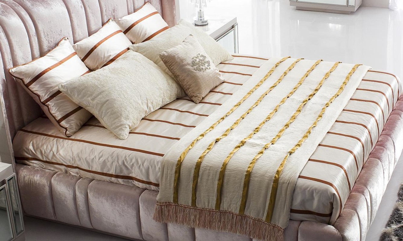 Комплект состоит из покрывала с рисунком в полоску 240*260; 1 простыни на резинке для матраса 180*200; 2 больших прямоугольных подушек 80*55 из комбинированных тканей; 3 квадратных подушек 60*60 с рисунком в полоску (как на покрывале); Подходит для кровати со спальным местом 180*200.