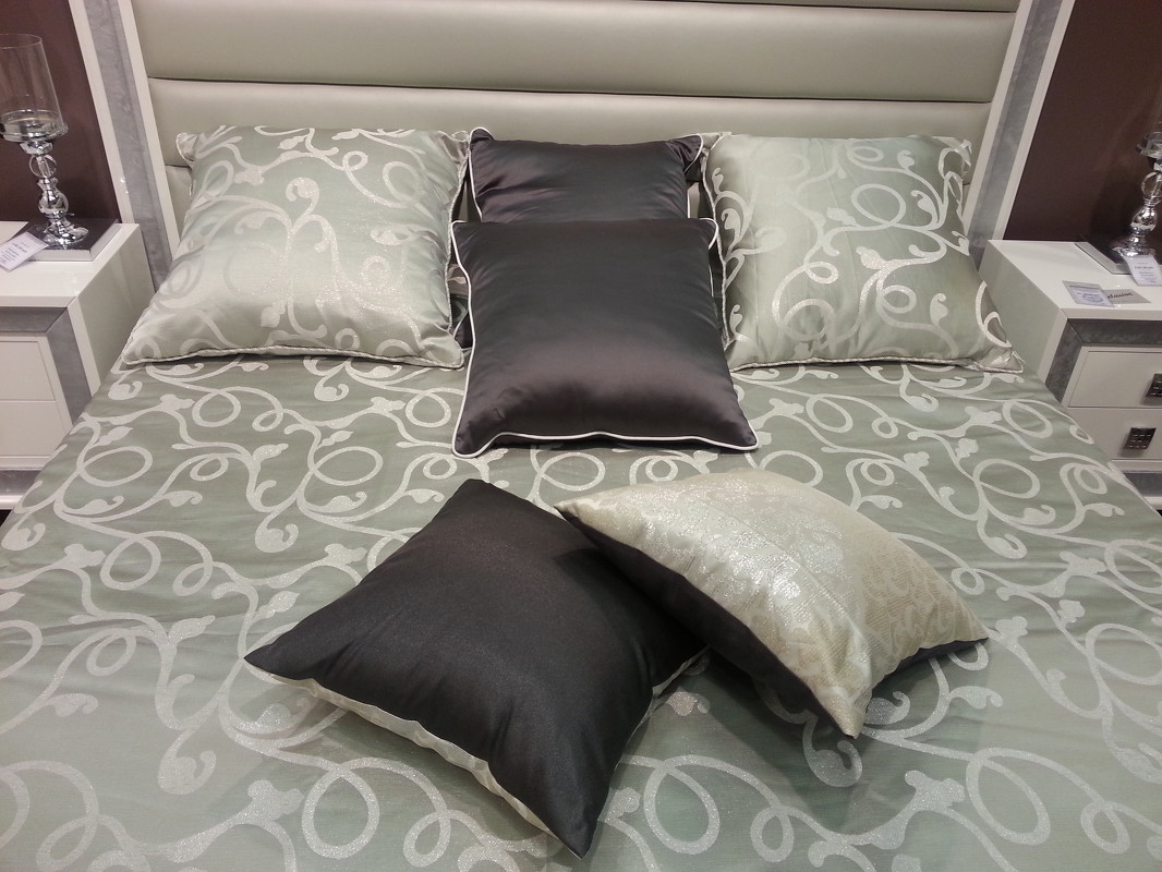 Дизайнерский комплект текстиля для спальни. В сет входят: покрывало, простыня, 2 большие квадратные подушки, 2 средние квадратные подушки, 2 маленькие квадратные подушки. Комплект подходит для спального места 180*200 см. Возможна примерка в вашем доме!